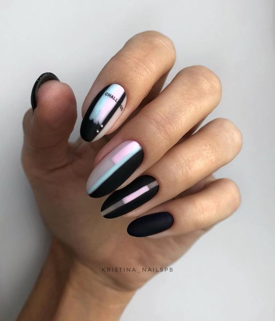La première place sur le podium des manucures printanières les plus en vogue est occupée par une manucure style minimal + motif géométrique, ainsi que par une combinaison de plusieurs ou deux couleurs contrastées. Ajouter un peu d'argent ou d'or à la conception ne fera pas mal. Dans la conception du dessin sur les ongles, vous pouvez utiliser des motifs sous forme de lignes, de points ou de différentes formes géométriques.