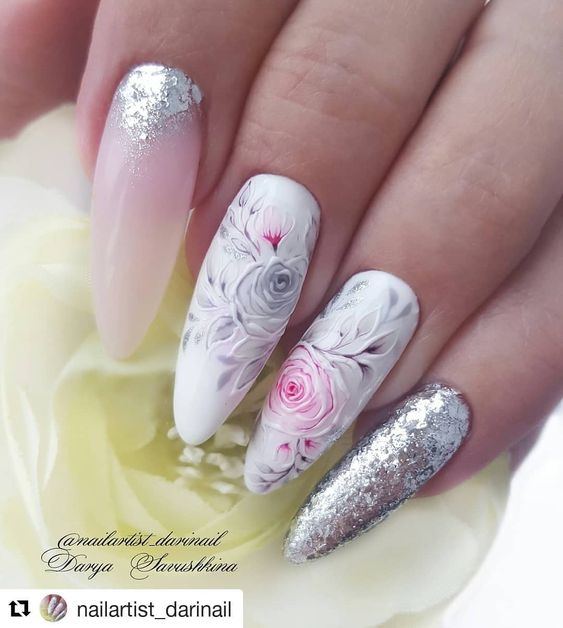 Le décor de manucure le plus cool est bien sûr métallique. Pour effectuer une telle manucure, on utilise un vernis à effet métallique, une feuille métallique ou un frottement. Toutes ces méthodes sont très bonnes et chaque méthode donne une manucure spéciale et magnifique à sa manière.