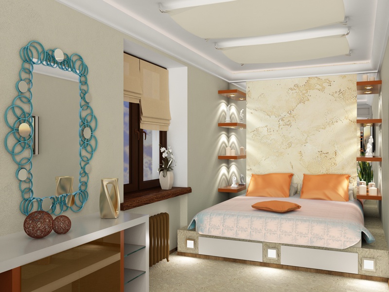 La question de l'aménagement d'une petite pièce doit toujours être abordée avec soin, en accordant une attention particulière au choix des couleurs et à la disposition appropriée du mobilier. Tout d'abord, vous devez attribuer une place pour une garde-robe spacieuse. Pour ce faire, vous pouvez utiliser le garde-manger existant ou créer artificiellement une niche. Il doit y avoir nécessairement des portes de compartiment, car les portes battantes dans une petite pièce enlèvent une zone déjà rare.