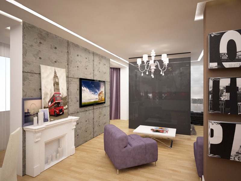 Dans la zone de loisirs, vous pouvez installer un grand lit, en le recouvrant d’une cloison en verre ou en placoplâtre, d’un écran, d’un rideau en textile ou d’autres matériaux. Si la famille a un enfant, il ne devrait pas y avoir de télévision dans la zone de loisirs. Ce sera plus approprié dans la zone des invités, à côté d'un petit canapé pliant.