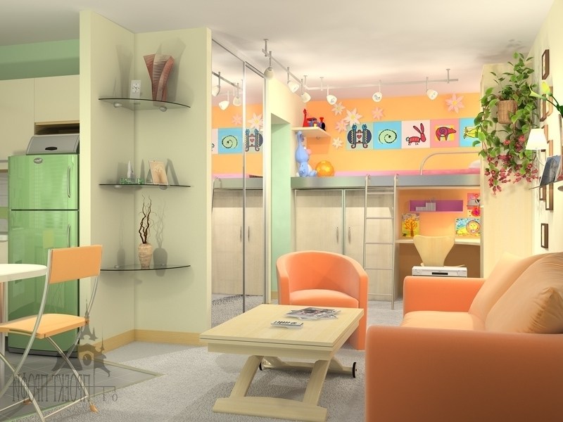 Comment équiper un appartement d'une pièce pour une famille avec un enfant