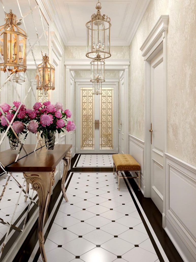 Le hall d'entrée est la pièce la plus importante qui crée la première impression d'une maison privée. Mais à part la beauté, la fonction principale de cette partie de la maison. Il doit être organisé de manière à ce que le confort et l’esthétique, la fonctionnalité et la beauté soient combinés ici.