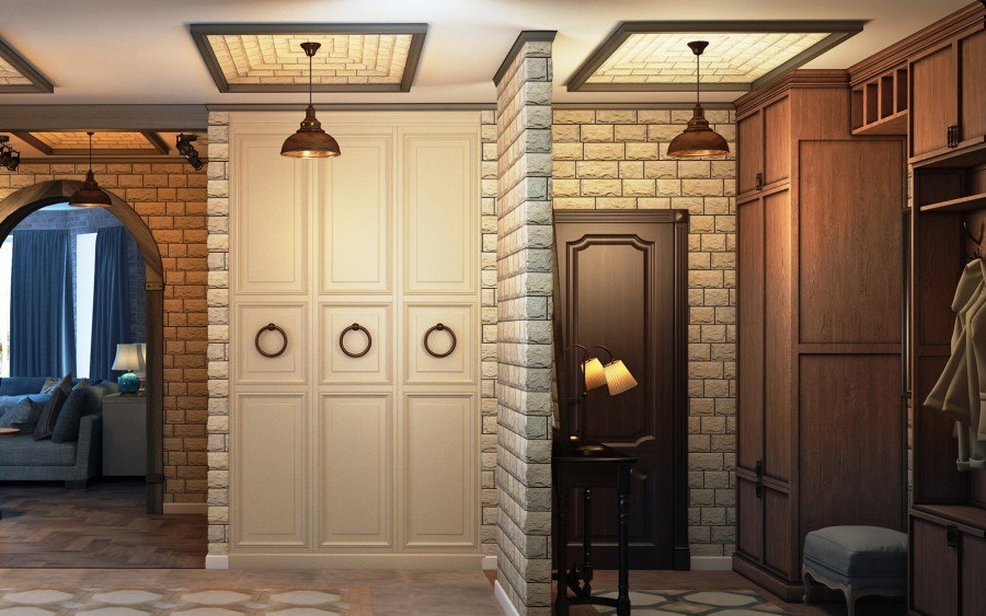 Ils prennent beaucoup de place. Les lustres d'époque sont acceptables dans un grand couloir avec de hauts plafonds. Dans un couloir étroit, pour augmenter visuellement l'espace, l'éclairage doit être dirigé dans une direction.