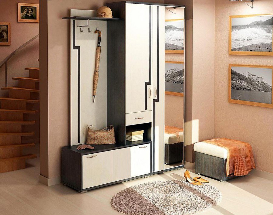 Un petit couloir peut être équipé d'un cintre. Elle pourra remplacer les grands meubles lors du placement des vêtements d'extérieur. Pour ranger des objets dans les couloirs de maisons privées, ils utilisent souvent un placard ou une commode.