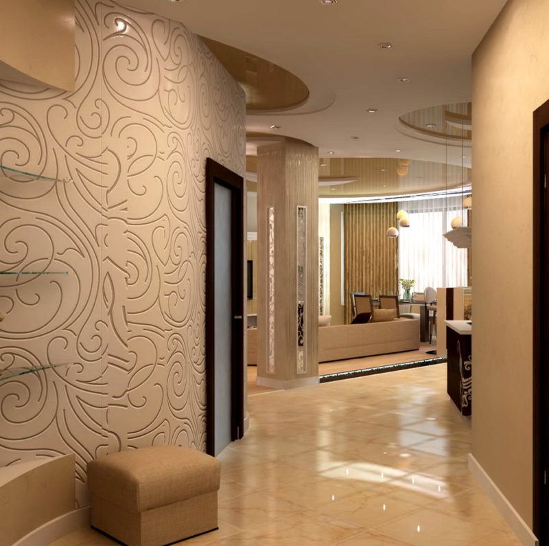 Mur design dans le couloir et le couloir. Matériaux et finitions