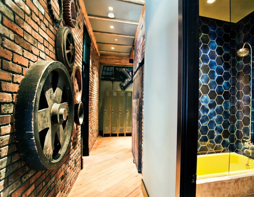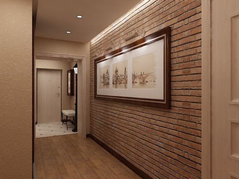 Un mur de briques à l'intérieur du couloir est une solution élégante. De cette façon, un mur d'accent peut être distingué. La maçonnerie devrait être naturelle. Il peut être recouvert de peinture blanche ou vous pouvez conserver les nuances naturelles. Les maîtres recommandent de faire un tel mur le long du couloir, mais pas en face de la porte d'entrée.