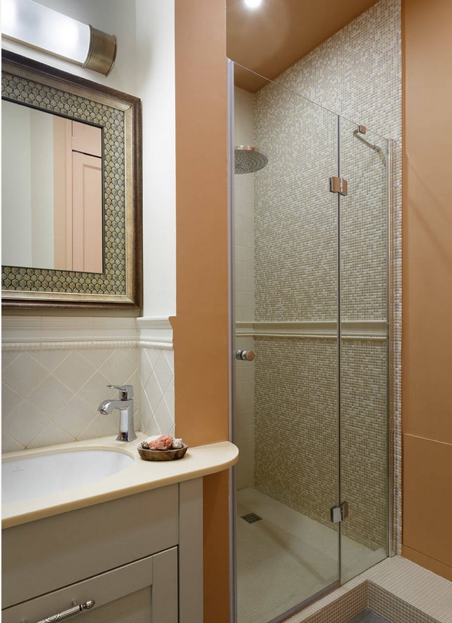 Les fabricants fabriquent le fond de certaines douches sous la forme d’un bain de siège. Allongé ici ne fonctionnera pas, mais vous pouvez vous asseoir dans l’eau chaude. Dans une petite salle de bain, vous devriez acheter une douche avec des lunettes transparentes et non avec des lunettes dépolies. Ensuite, il va se dissoudre à l'intérieur et ne pas attirer l'attention.