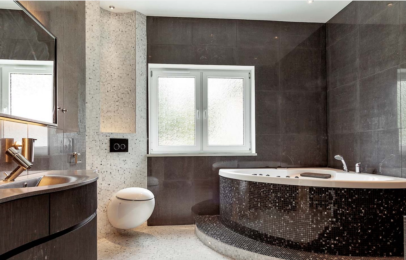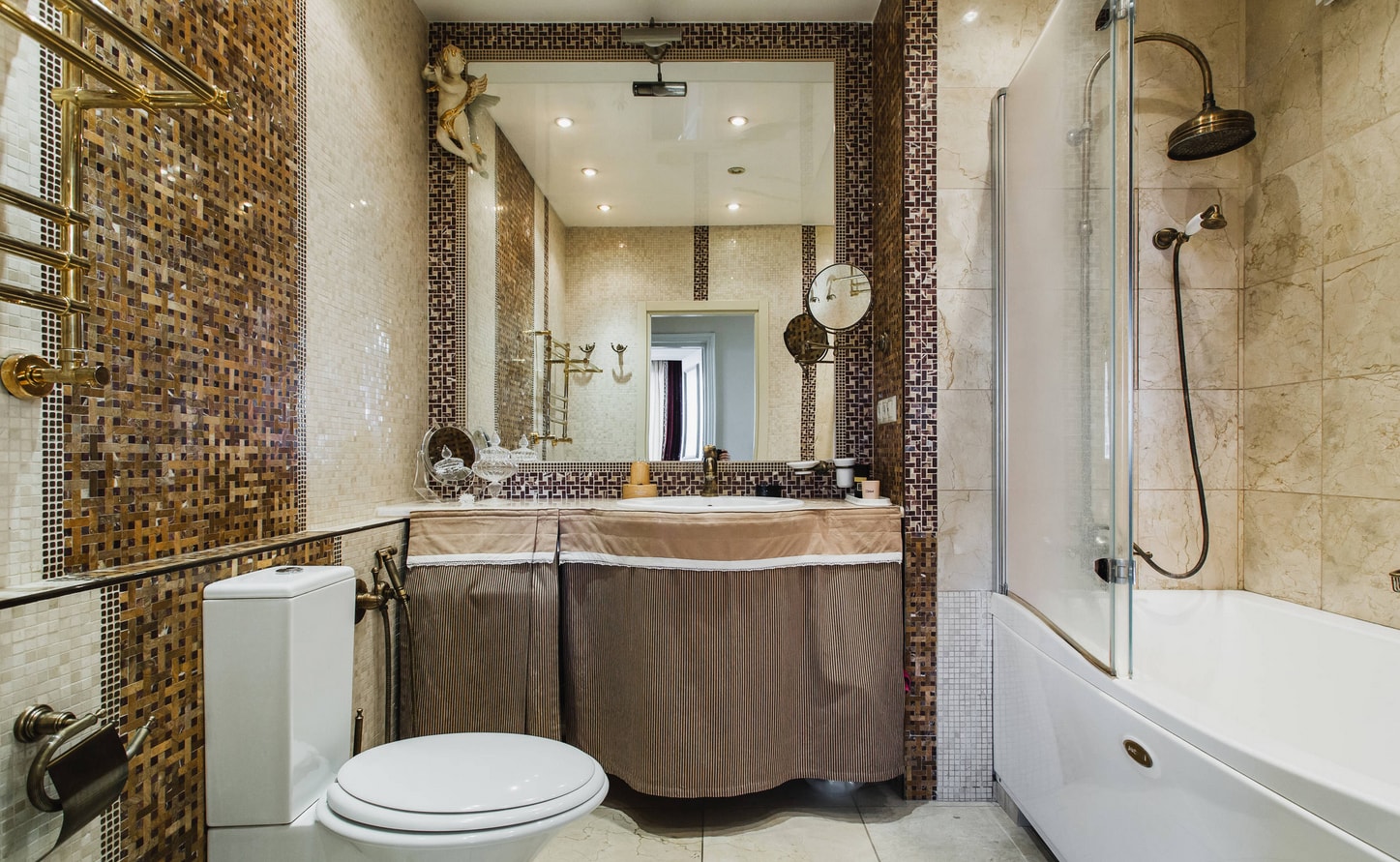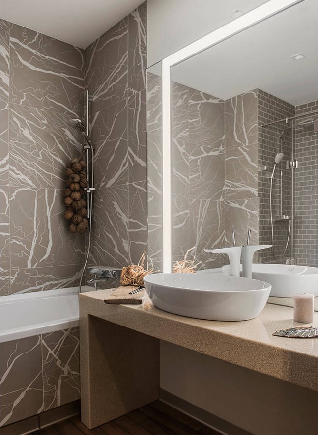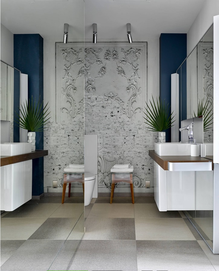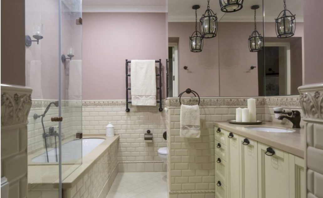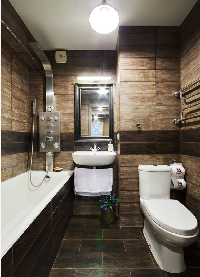 La conception et la réparation de la salle de bain commencent par le choix des couleurs, du style et du choix des carreaux pour les murs et les sols. Les grandes dalles conviennent bien aux salles de bains de grande surface. L'œil humain est conçu de telle sorte que, dans un espace restreint, il perçoit d'abord le nombre de carreaux, puis seulement leur taille. Plus il y a de carreaux sur le mur, plus la pièce apparaît. Les murs de la salle de bain peuvent être carrelés. Mais des couleurs très colorées réduiront l'espace.