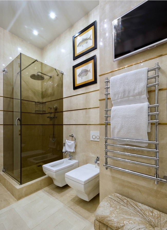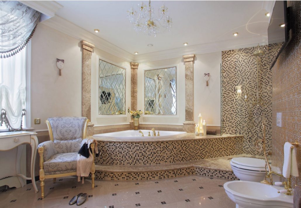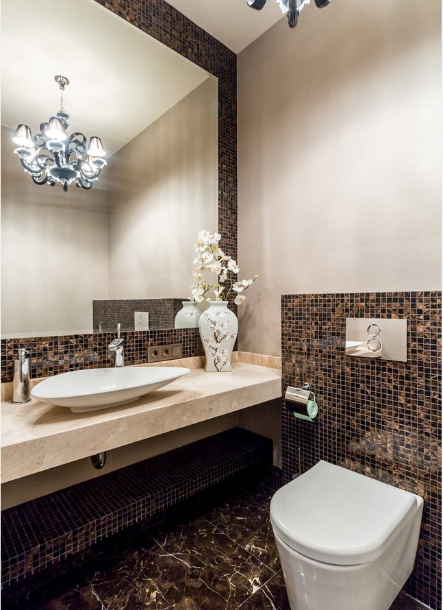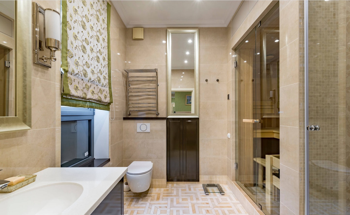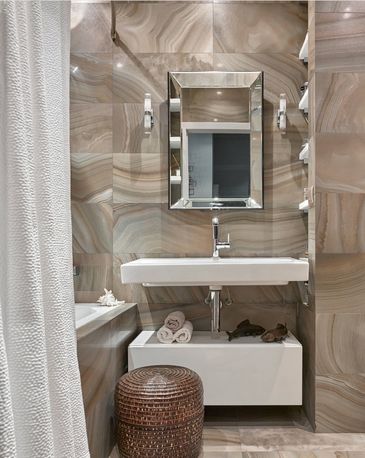 La conception et la réparation de la salle de bain commencent par le choix des couleurs, du style et du choix des carreaux pour les murs et les sols. Les grandes dalles conviennent bien aux salles de bains de grande surface. L'œil humain est conçu de telle sorte que, dans un espace restreint, il perçoit d'abord le nombre de carreaux, puis seulement leur taille. Plus il y a de carreaux sur le mur, plus la pièce apparaît. Les murs de la salle de bain peuvent être carrelés. Mais des couleurs très colorées réduiront l'espace.