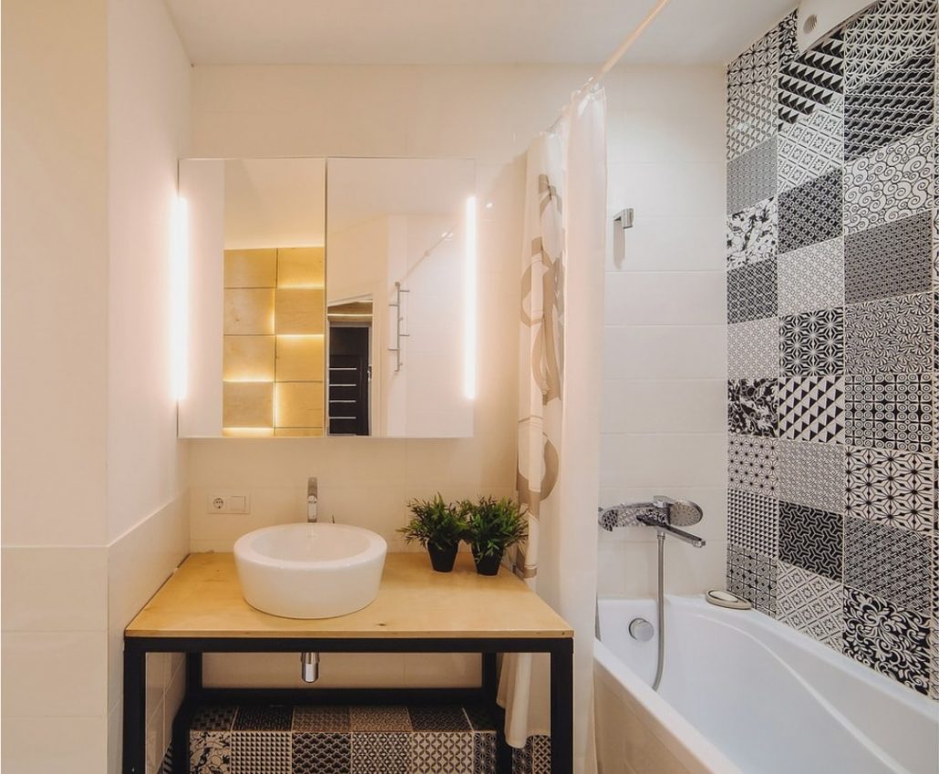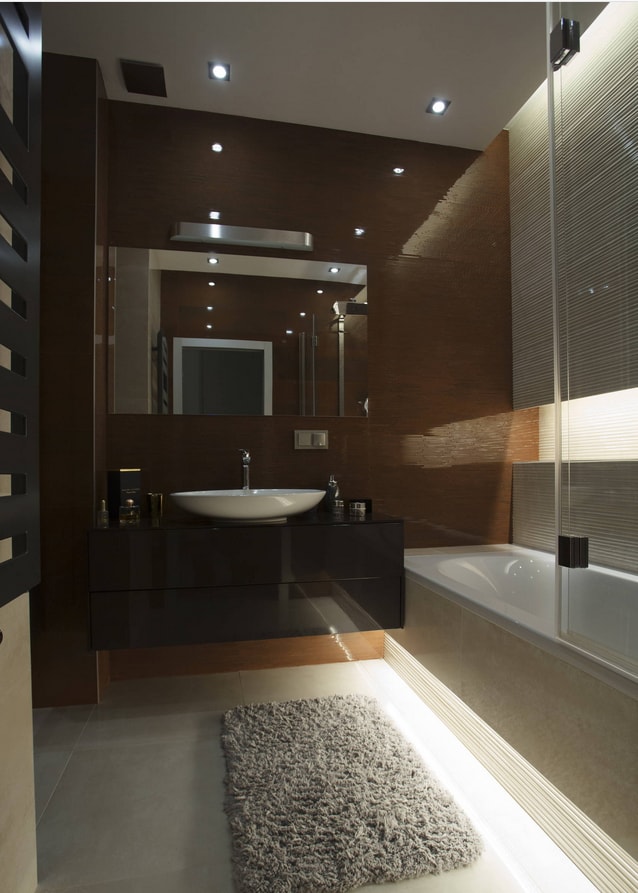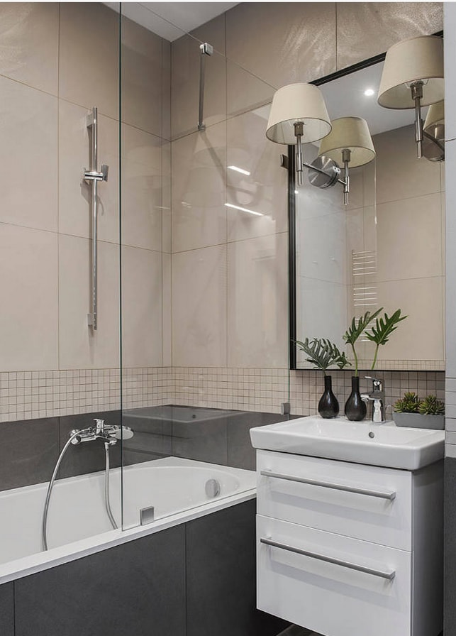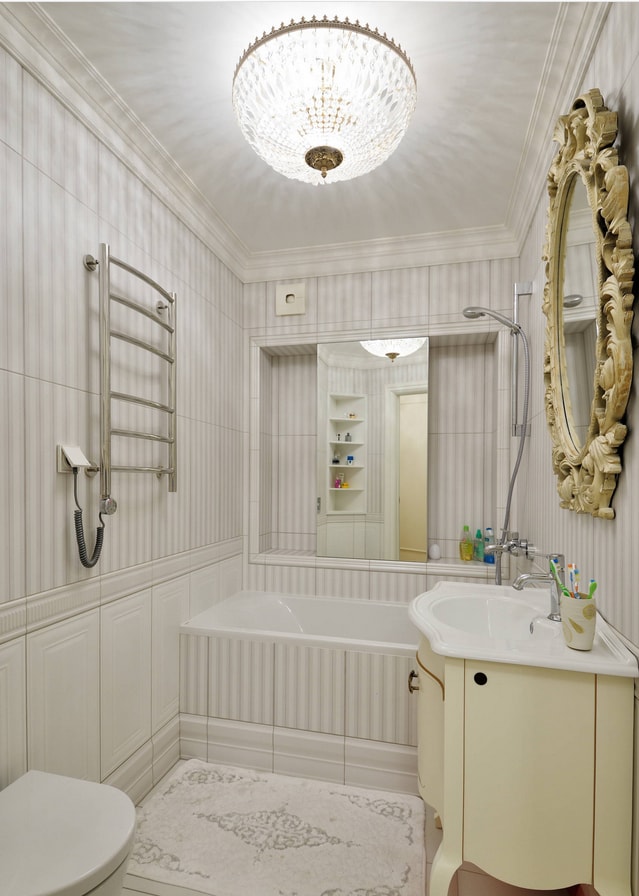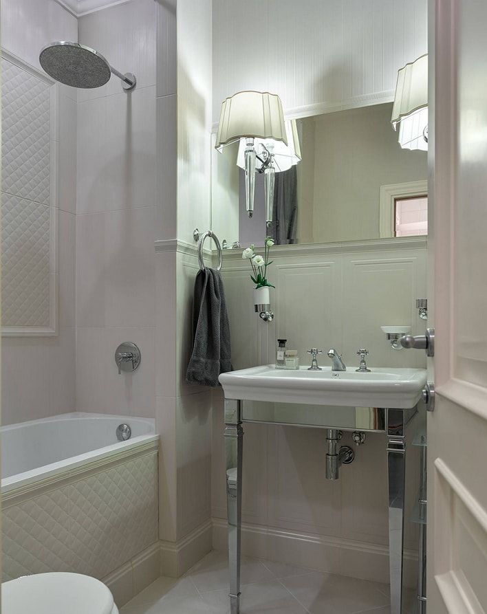 Un bon moyen d'augmenter le volume visuel d'une petite pièce consiste à placer un ou plusieurs miroirs sur le mur. Mais dans la salle de bain, le miroir transpire constamment, ce qui rend difficile son entretien. Pour une augmentation visuelle de l'espace, l'intérieur doit être décoré de couleurs vives. Une nuance claire doit être complétée par des éléments de couleur contrastante. Par exemple, les joints de carreaux clairs dans la salle de bain sont nettoyés avec un coulis sombre ou un coulis de couleur plus saturée. Il y a une règle d'augmentation visuelle de l'espace - les rayures verticales sur les murs augmentent la hauteur du plafond de la pièce. Et les rayures horizontales rendent la pièce plus large et plus volumineuse.