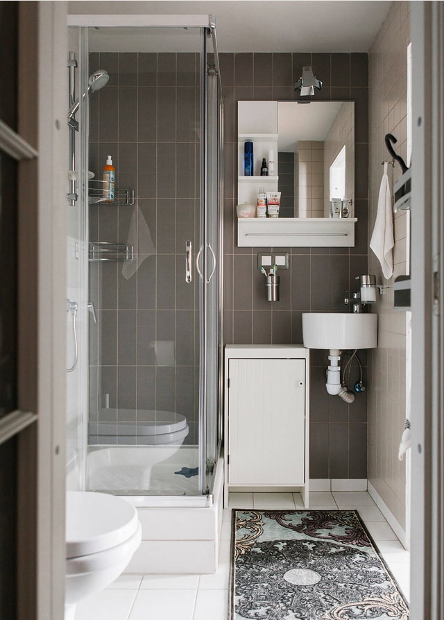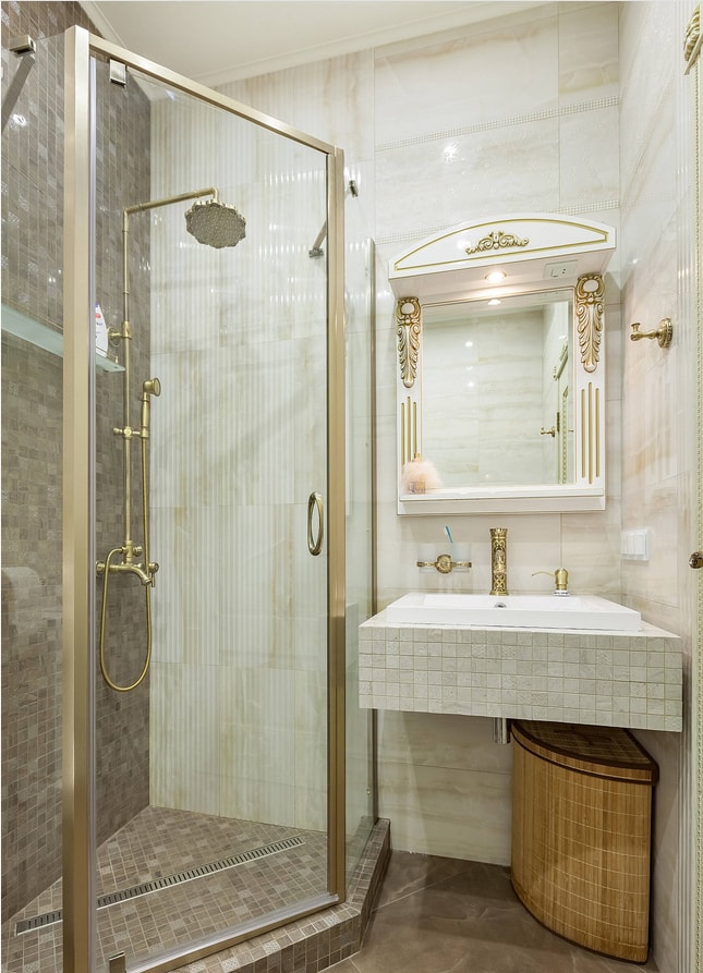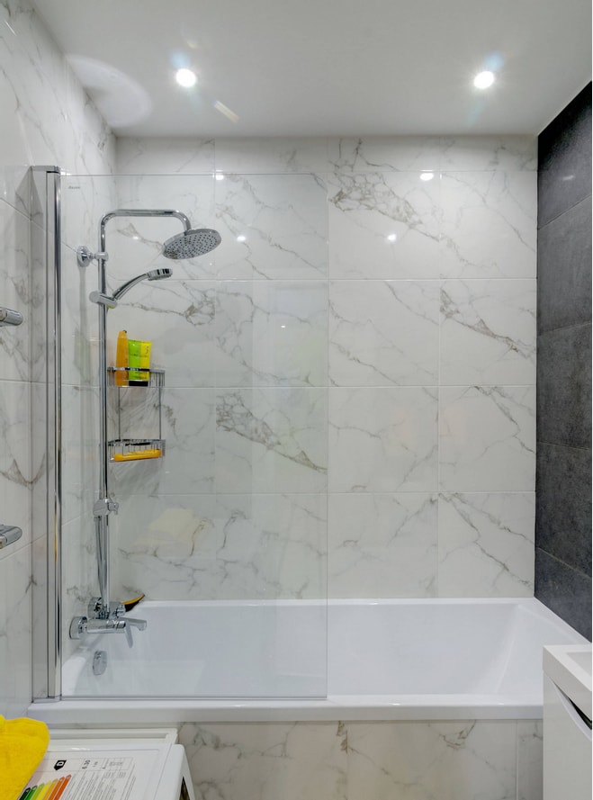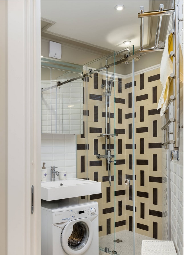 Pour ceux qui peuvent se passer de bain et veulent économiser de l'espace, vous pouvez installer une douche. Ce mouvement réduira de moitié la zone occupée.