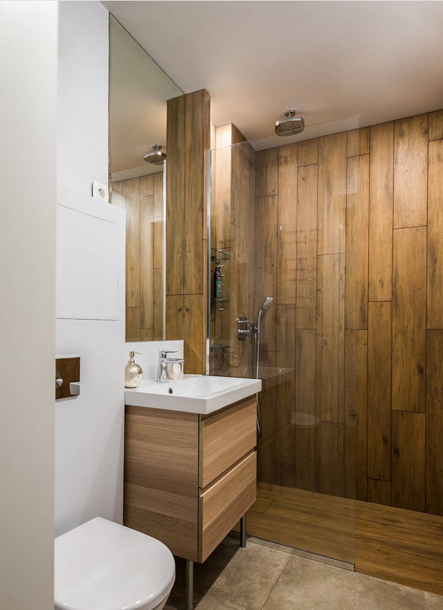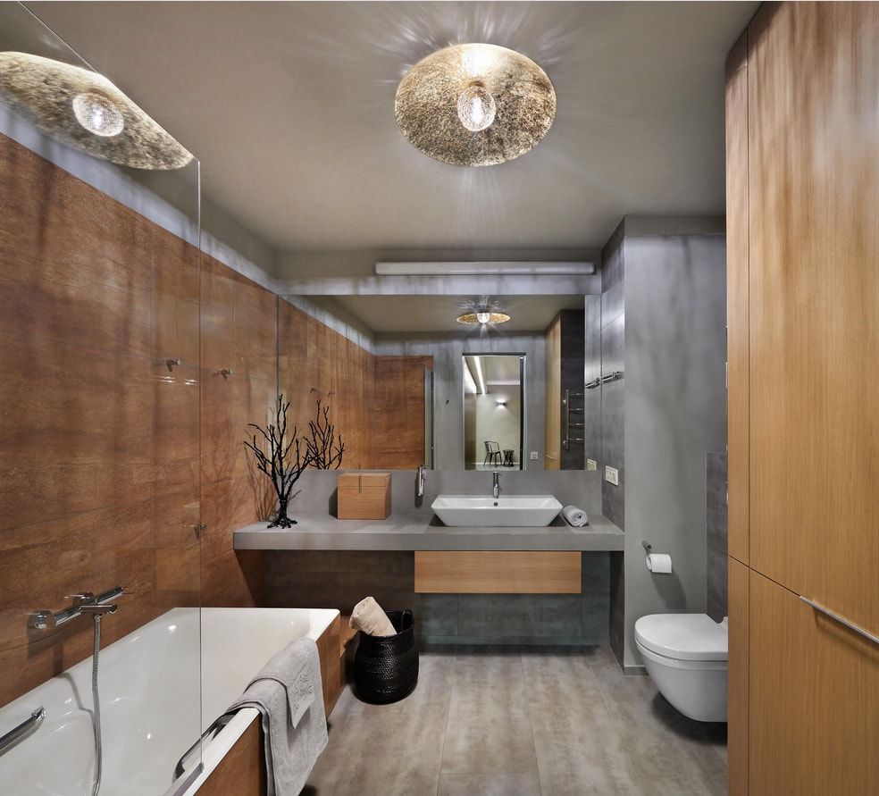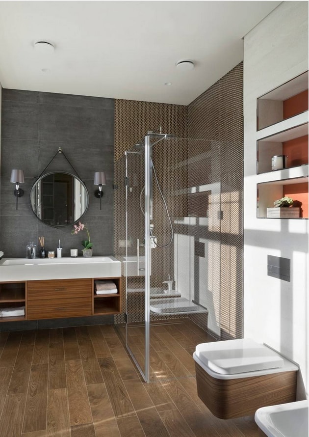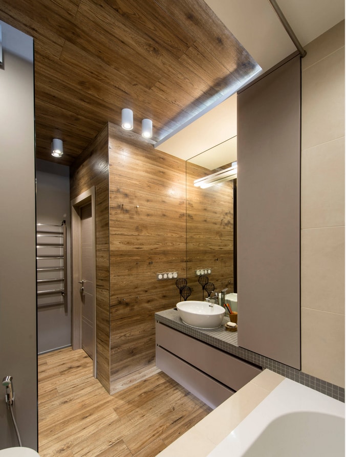 Il est recommandé d'utiliser du bois naturel dans la décoration et les meubles de salle de bains en présence d'une bonne ventilation forcée et d'une surface de 7 m². mètres. Si, malgré tout, on décidait d'utiliser du bois, il faudrait utiliser des meubles en bois résistant à l'humidité - Iroko, Zebrano, Wenge, Teak.
