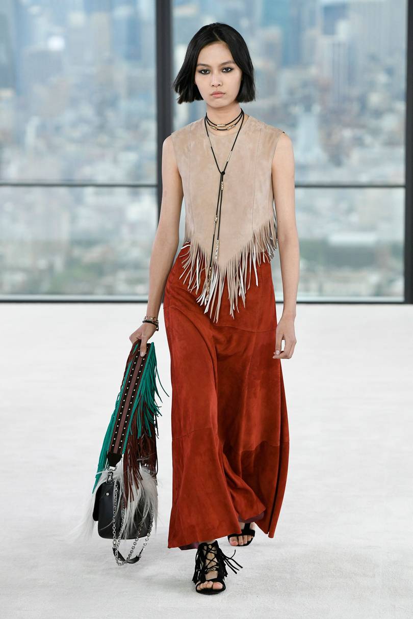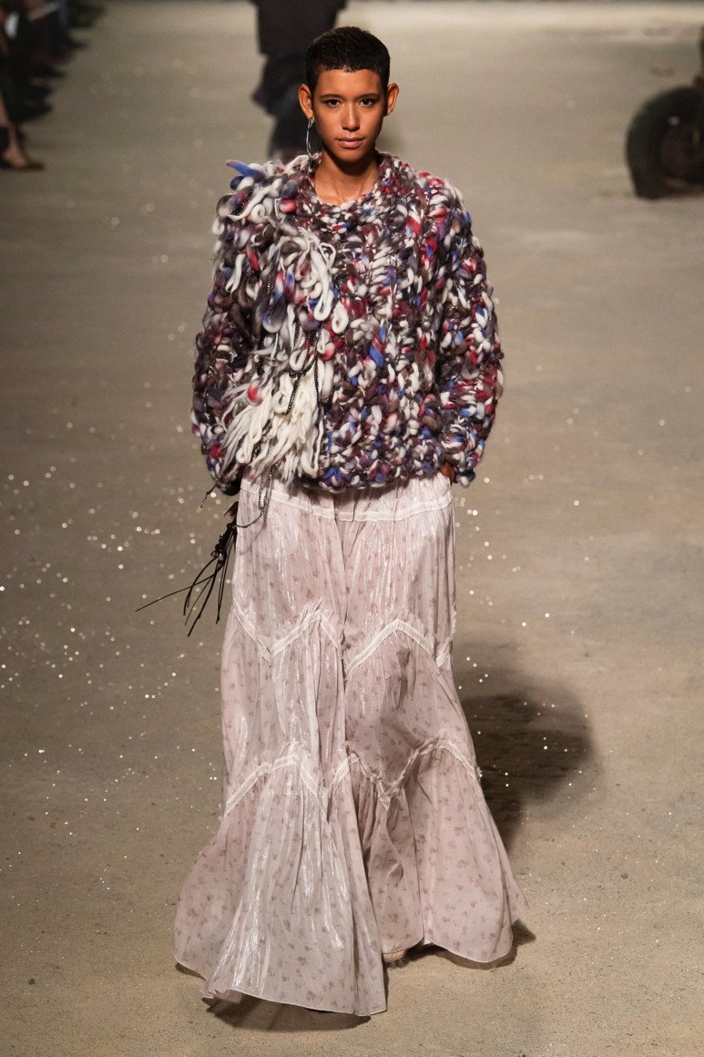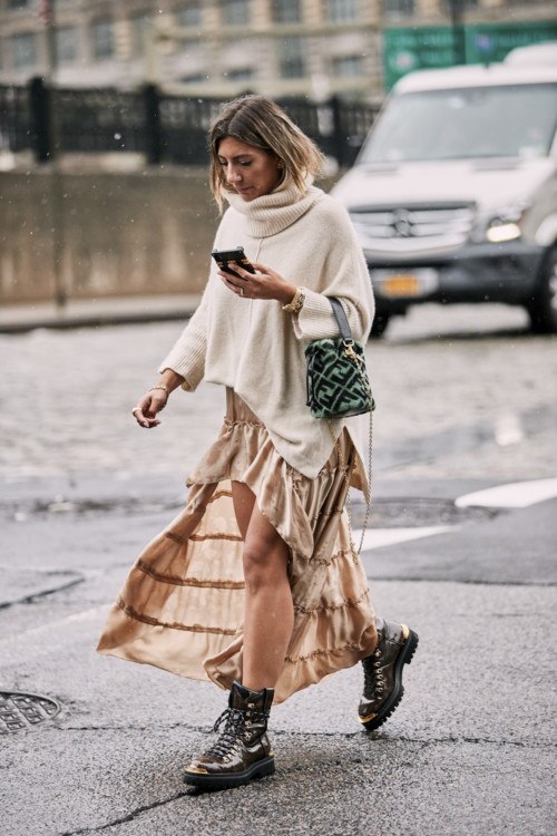 Les superpositions dans les images vont au bord du chemin, et des jupes inhabituelles sont à la mode à la place, ce qui permet de concurrencer les pantalons pour le confort et la commodité. Les jupes chaudes en laine peuvent combiner des éléments plissés. Cela contribue au confort de la marche. Les tissus les plus populaires pour la couture des jupes longues sont la viscose, la laine et les tricots.