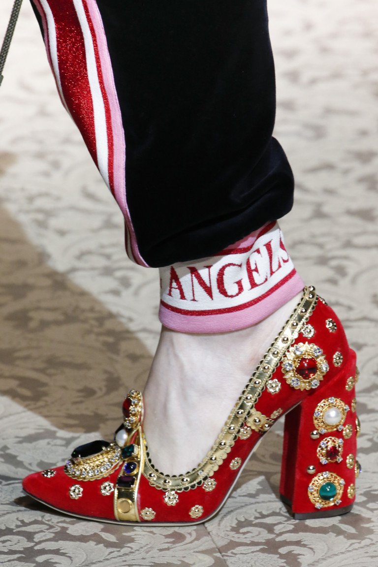 Lorsque vous regardez la collection Dolce & Gabbana à bout de bras, ce qui se passe est perçu différemment. Imaginez ce qui se passe réellement sur les podiums, si tout est irréaliste sur la photo de vêtements à la mode pour femmes de Dolce Gabbana automne hiver 2026! Et la chose est dans l'approche de conception, la qualité des vêtements et des détails incroyables. Les chaussures élégantes pour femmes sont l’un des éléments à la mode des designers. Comme toujours avec un décor brillant, dans des couleurs vives et un talon magnifique. Mettre des chaussures à la mode sur un bout en nylon dans un grand maillage est toujours à la mode.