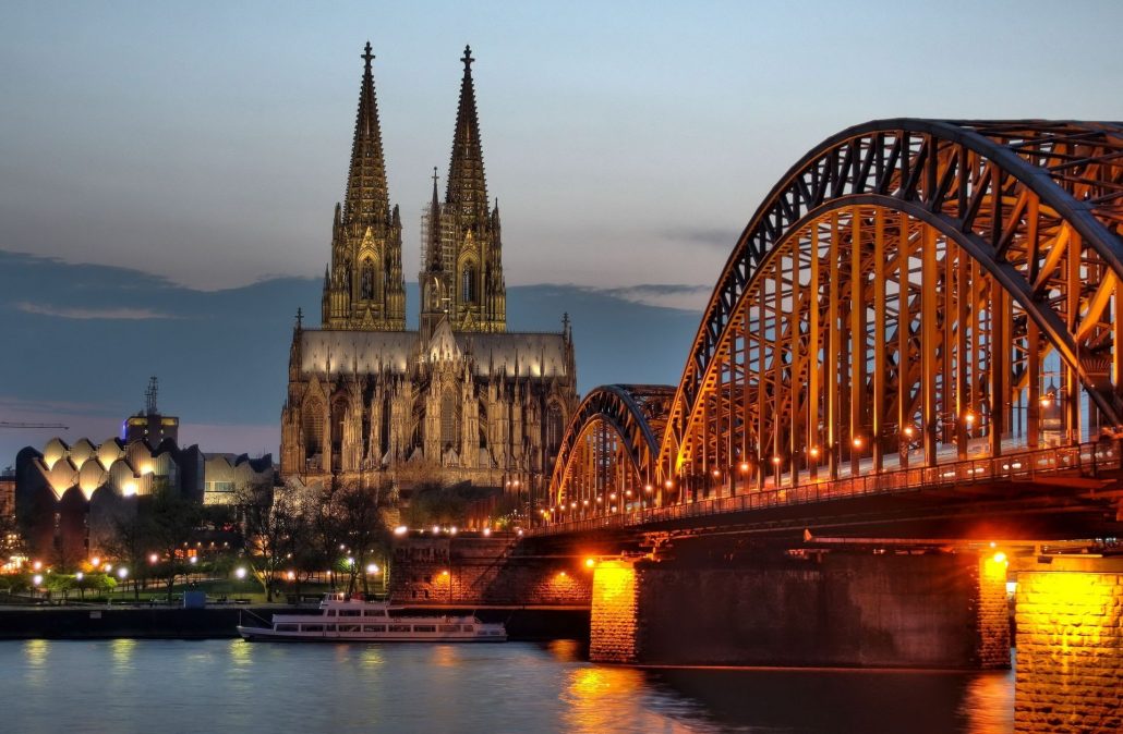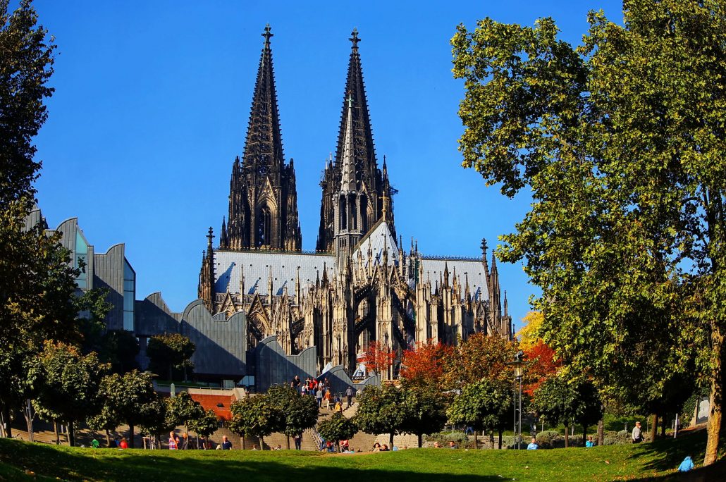 Située sur les rives du Rhin, la cathédrale est appelée le lieu le plus impressionnant de Cologne. Cet édifice de style gothique est devenu la plus haute cathédrale d'Europe. Sa construction a débuté en 1248. L'intérieur du bâtiment n'est pas moins magnifique que sa façade. Au-dessus de son autel principal se trouve le tombeau en or des trois rois.