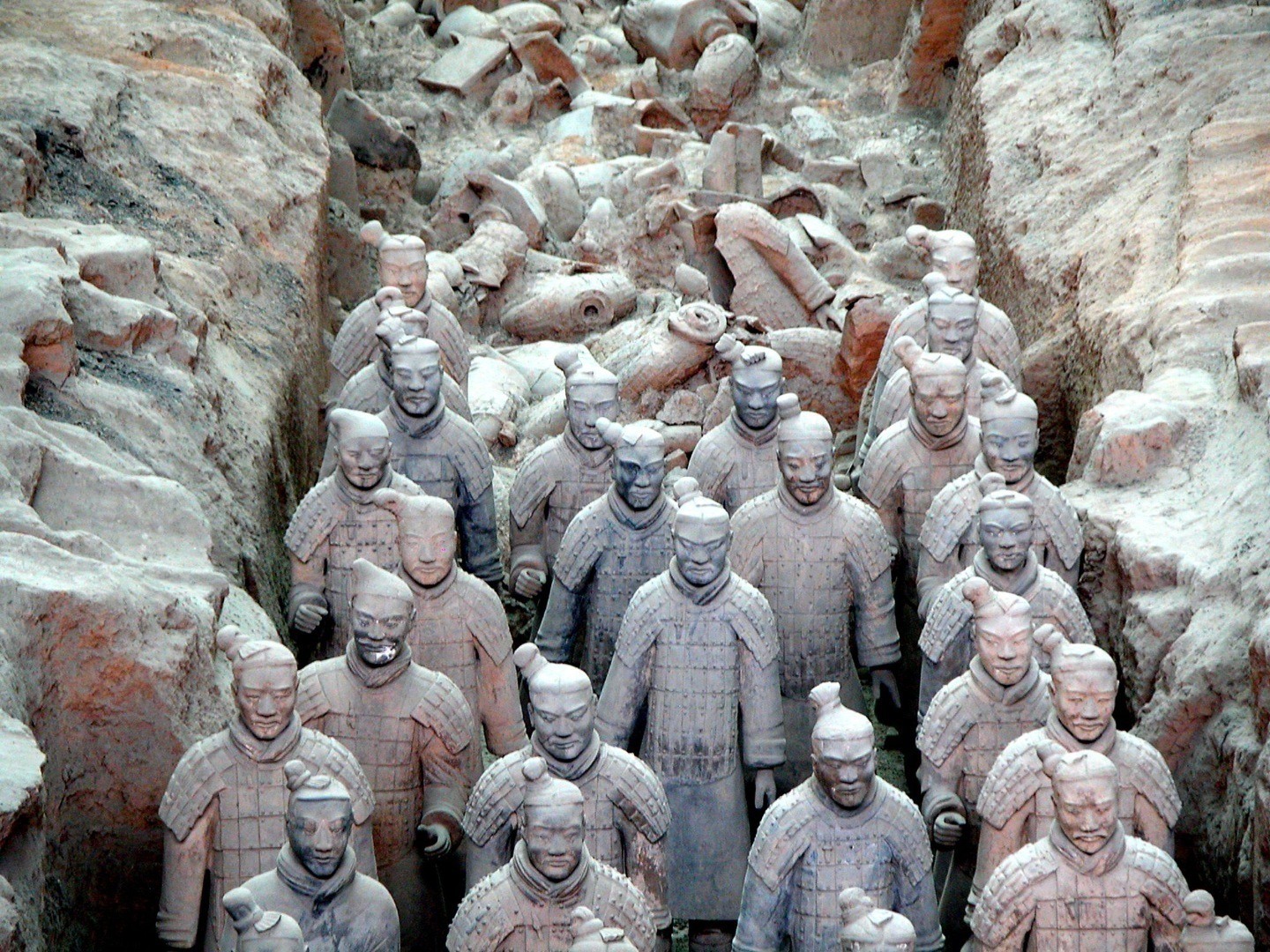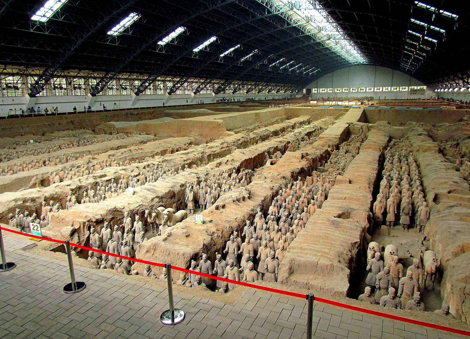 Quand Qin Shi Huang avait 13 ans, il a commencé à construire une tombe. À cette époque, après la mort de l'empereur, il était de tradition de l'enterrer avec une armée vivante. Mais les conseillers de Shihuandi l'ont persuadé de remplacer les vivants par des copies d'argile. En 1974, des paysans ont découvert accidentellement une tombe contenant des statues de milliers de soldats.