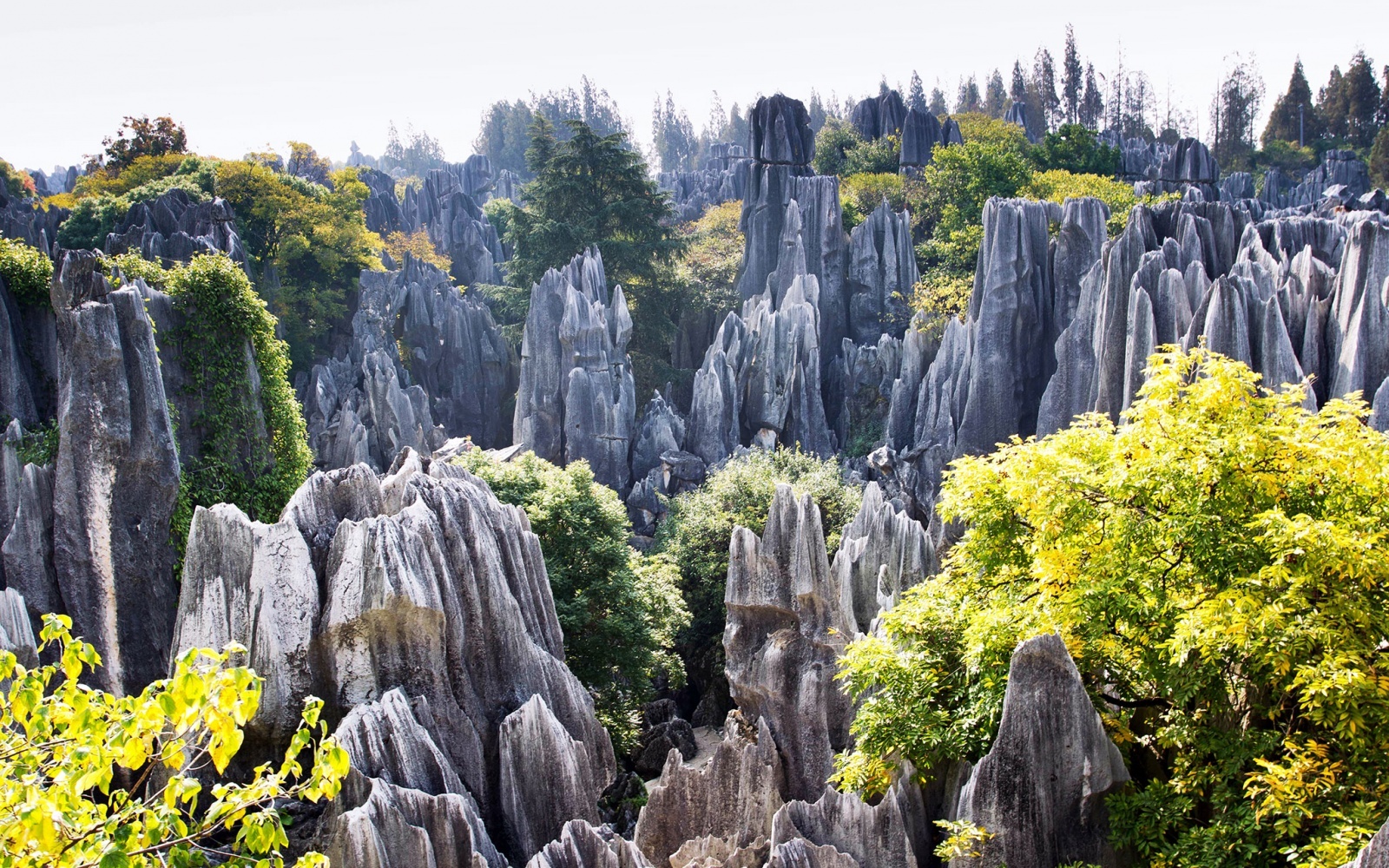 La superficie totale du parc est de 350 kilomètres carrés. Il est apparu il y a environ 200 millions d'années sur le site d'une ancienne mer peu profonde. La hauteur, les rochers, également appelés forêt de pierre, atteint 40 mètres. Au total, le parc national est divisé en zones, comprenant: des lacs, un jardin de pierres, des cascades, des grottes, des grottes et des prairies. Chaque année à Shilin, un grand festival de la flamme est organisé.