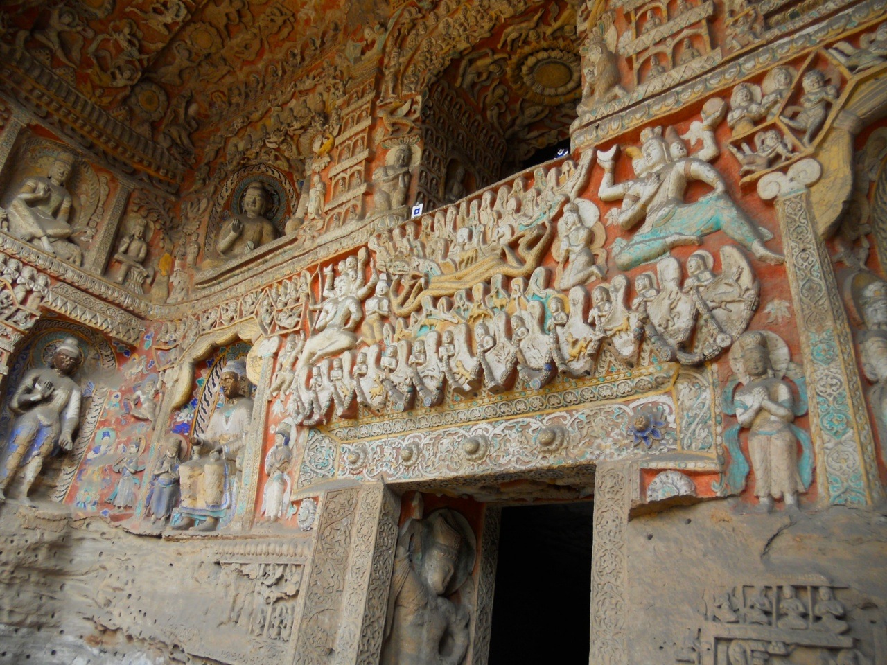 C'est un grand monument culturel du pays. Il est situé dans la province du Gansu. Le complexe de grottes comprend 492 sanctuaires. Les murs des grottes sont décorés de sculptures et de fresques. La construction du temple a eu lieu au IVe siècle et il a fallu au moins 1 000 ans pour sa décoration.