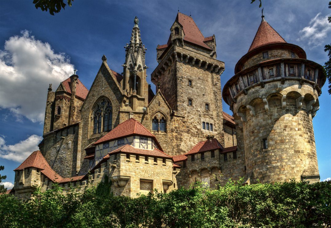 C'est l'un des châteaux les plus populaires de Vienne, situé à quelques kilomètres de la ville. Il a été construit sur le site d'un ancien édifice romain et, au XIIIe siècle, est devenu la propriété de la dynastie des Habsbourg. Pendant la guerre de Suède, le château fut détruit et pendant près de 200 ans, il fut en ruine. Au 19ème siècle, seuls les Wilceks, qui achetèrent ces terres, commencèrent à les restaurer, lui donnant ainsi son apparence d'origine.