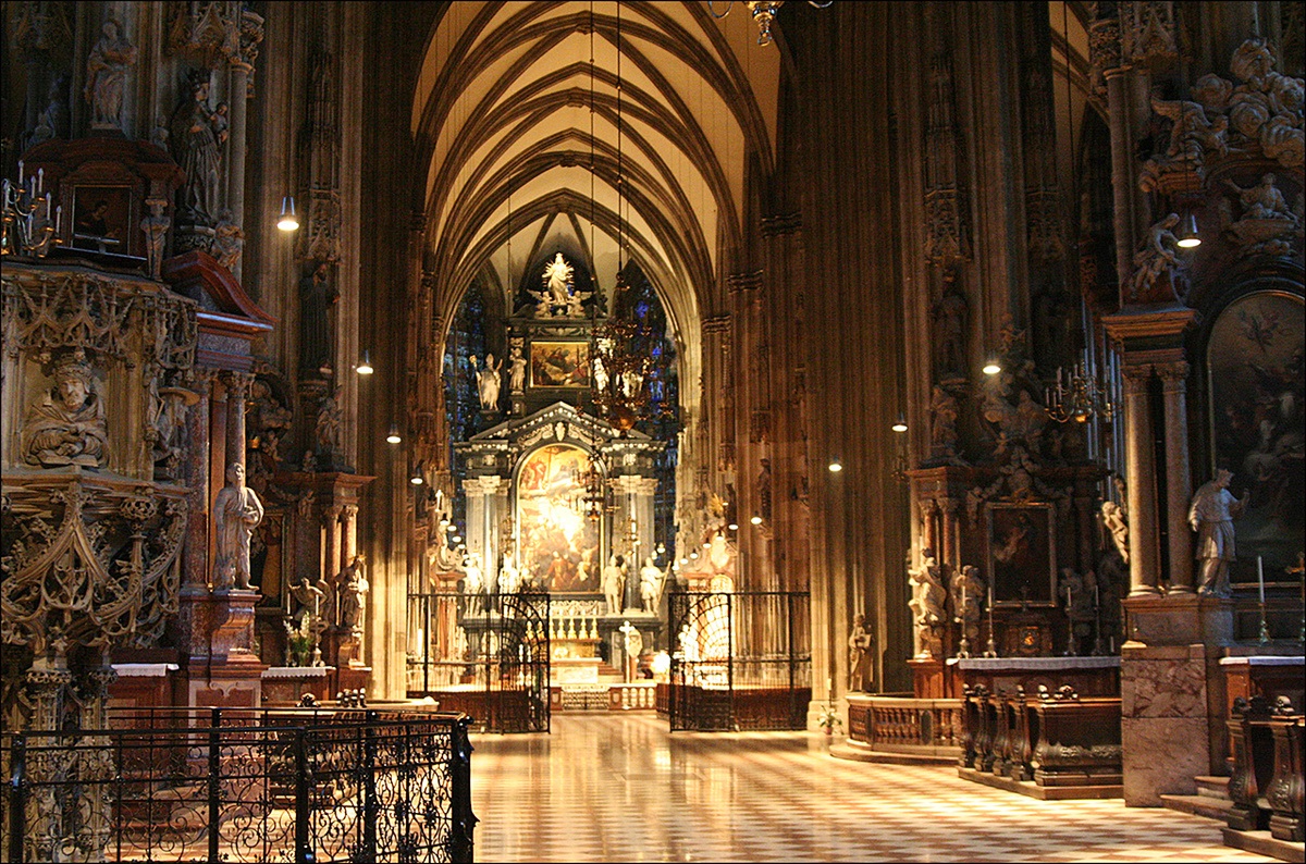 La cathédrale, construite au XIVe siècle dans le style gothique, surprend par sa riche décoration intérieure. C'est aujourd'hui l'une des cartes de visite de Vienne. Au cours de son histoire, il a été reconstruit à plusieurs reprises et en 1523, il a eu la vue sous laquelle on peut le voir maintenant. Sur l'une des tours de la cathédrale se trouve une terrasse d'observation offrant une vue imprenable sur la ville. Dans les catacombes souterraines se trouvent les tombeaux de nombreuses dynasties royales.