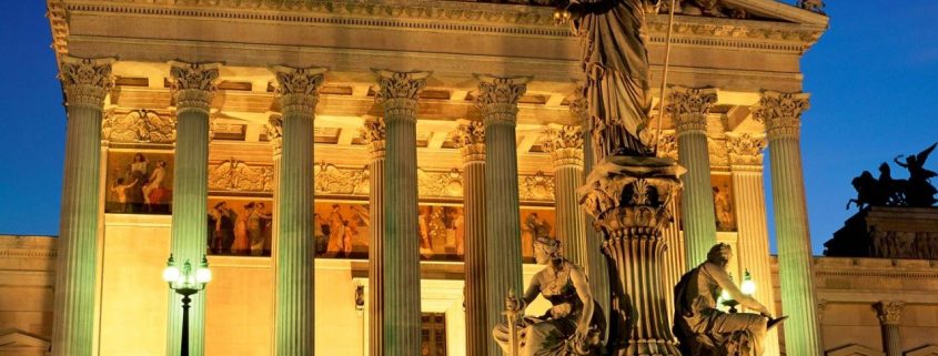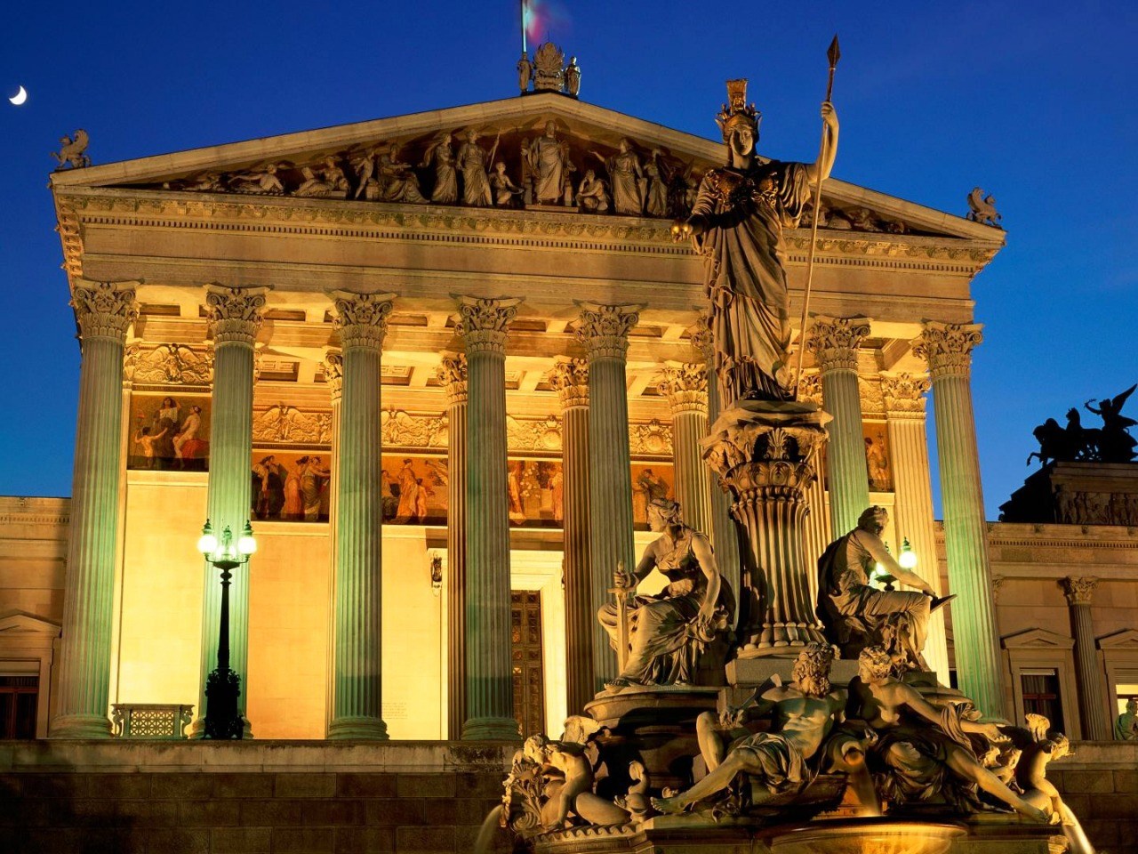 Il s’agit d’un complexe architectural combinant des éléments de styles anciens, byzantins et néoclassiques. Le bâtiment a été construit au XIXe siècle par le baron Hansen afin de rappeler aux générations futures que la Grèce était le berceau de la démocratie. Après la chute de l'Autriche-Hongrie, les conseils fédéral et national ont commencé à se réunir dans le bâtiment du parlement.
