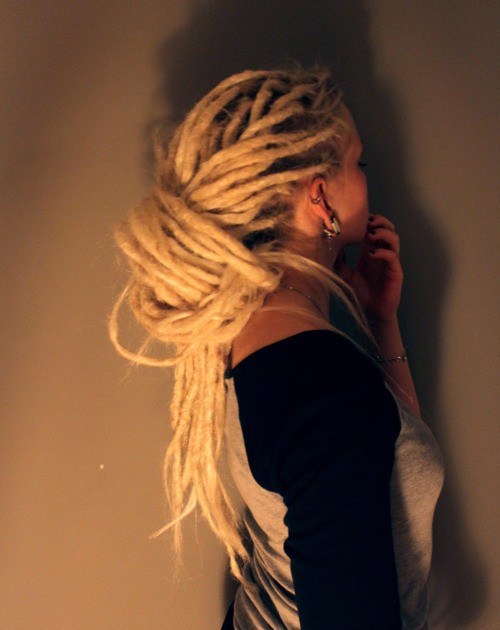 La coiffure la plus commune avec des dreadlocks est la queue ordinaire. Bien qu’il soit difficile de l’appeler ordinaire, c’est différent à chaque fois. Une telle coiffure n'a pas de finesse et de nombreux «coqs» créent un look spectaculaire. Un autre style de coiffure avec des dreadlocks est un chignon ou un chignon. Les dreadlocks ainsi collectés ne grimpent pas dans le visage et les yeux, mais ont également l’air créatif. Des nattes à la mode sont également tissées à partir de dreadlocks, ce qui permet d'obtenir une image plutôt romantique.