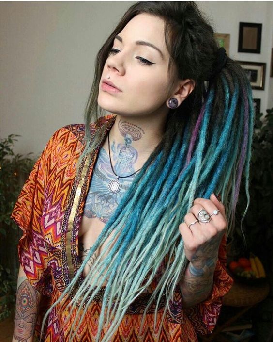 Les dreadlocks colorés complètent efficacement votre look lorsque vous souhaitez paraître original et extravagant. L'industrie de la coiffure moderne crée de nombreux éléments différents avec lesquels vous pouvez donner à vos cheveux un look unique. Les dreadlocks colorés sont en parfaite harmonie avec la frange. Si vous souhaitez obtenir un maximum de créativité dans l'image, les dreadlocks de couleur sont la solution idéale.