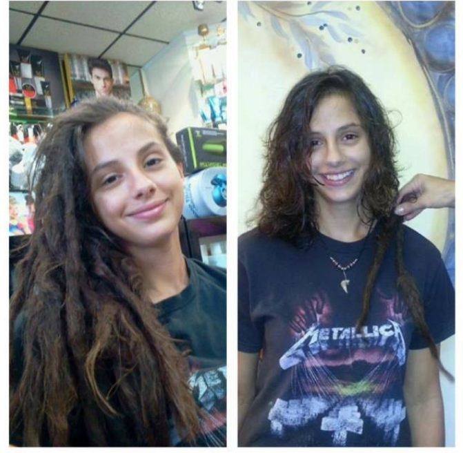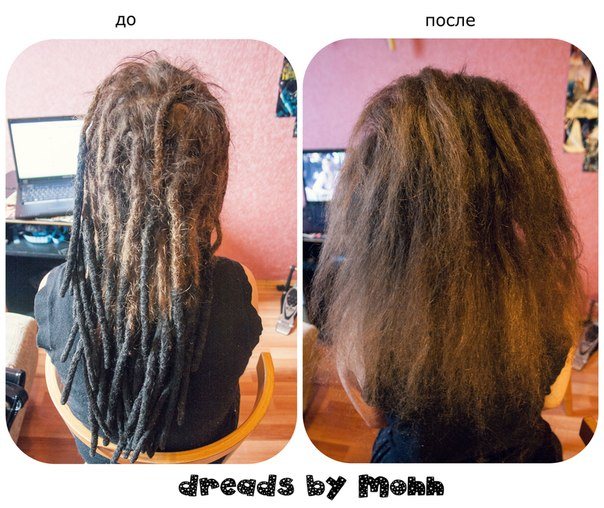 Le plus inhabituel est que le premier lavage de cheveux avec des dreadlocks n’est autorisé qu’après un mois également. Après seulement une aussi longue période, les dreadlocks seront complètement formés et vous ne pourrez pas les laver plus d'une fois par semaine. En raison de mauvaises procédures d'hygiène causées par de longs dreadlocks, une odeur désagréable peut émaner. Cela est dû au fait que l'air n'entre pas dans le cuir chevelu et que les processus qui causent les pellicules et les démangeaisons commencent. Mais le vrai problème est de se débarrasser des dreadlocks. Parfois, une coupe de cheveux courte devient la seule solution. Beaucoup de femmes sont intéressées par la question: qu'adviendra-t-il des cheveux après que la propriétaire voudra se débarrasser des dreadlocks? Regardez la réponse à cette question avec des exemples illustratifs de cheveux avec des dreadlocks avant et après sur la photo.