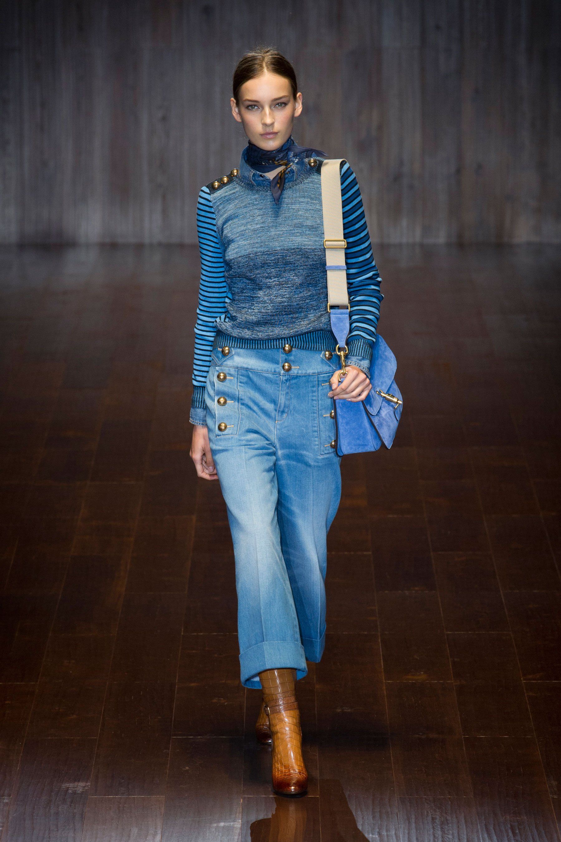 Les jeans repliés sont populaires depuis plus d'une saison. Mais à l'automne-hiver 2025-2026, les revers deviennent encore plus grands. Leur largeur réelle est de 15 cm et plus. Cette option semble très audacieuse.