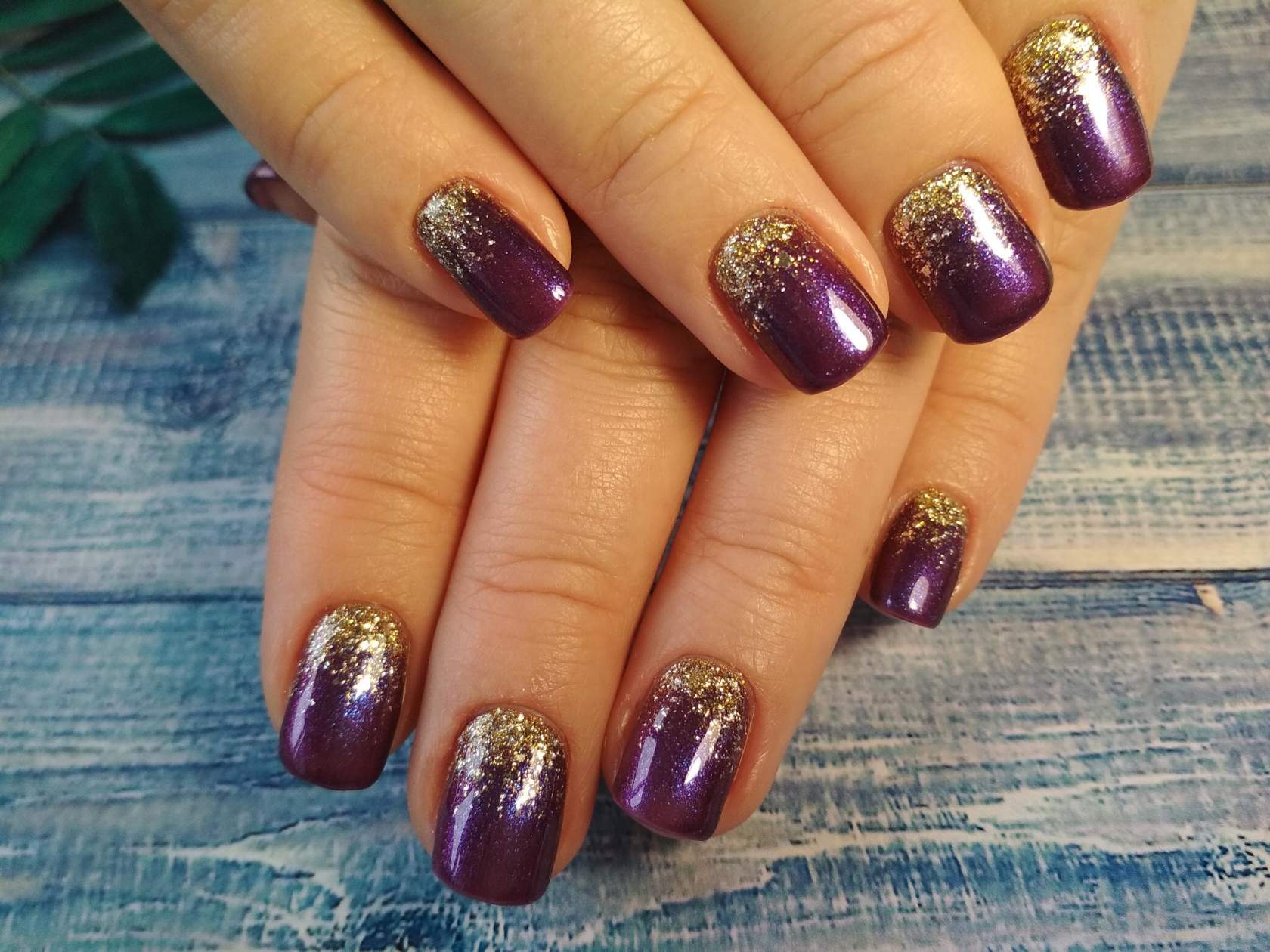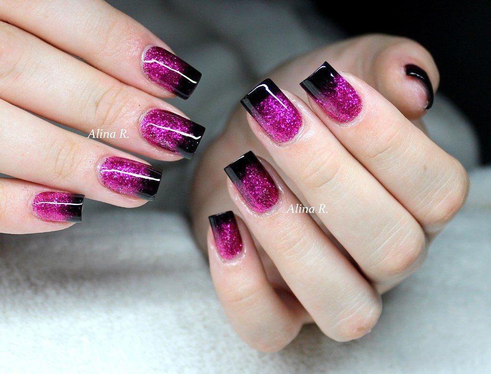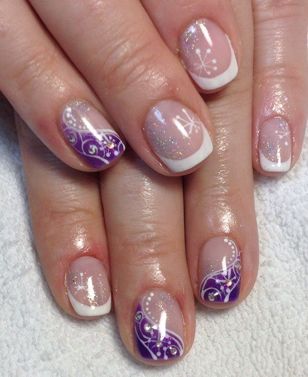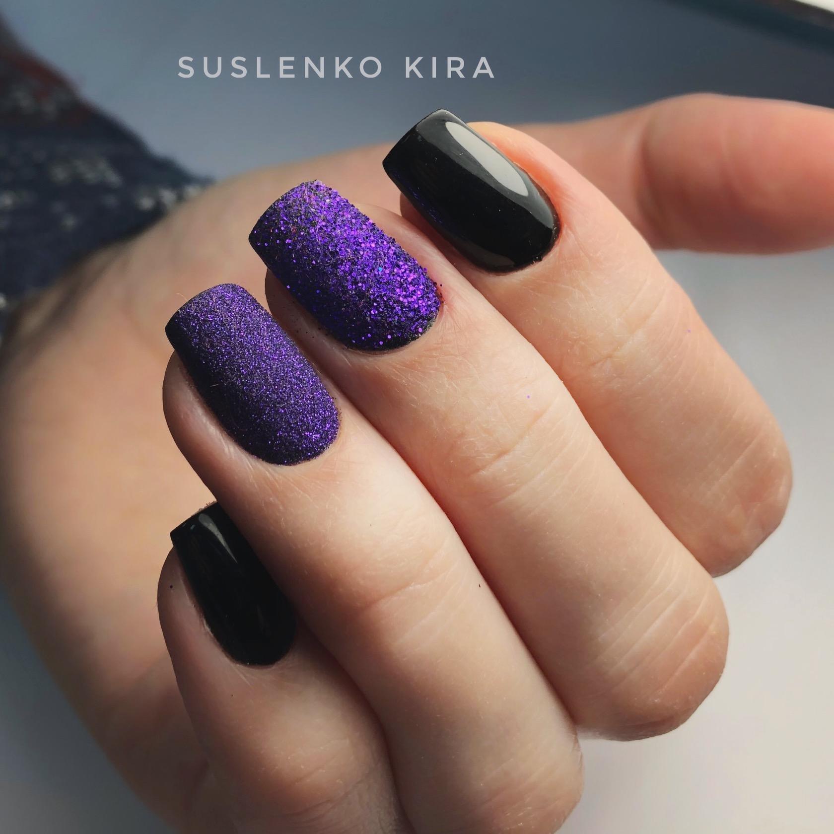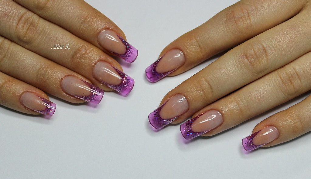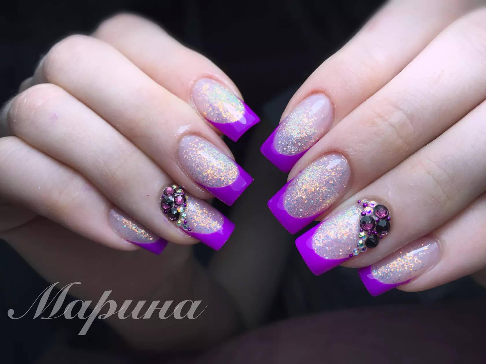 Une des techniques uniques dans la conception de la manucure s'est avérée être une option enchanteresse - la manucure pourpre avec des étincelles. Pour les occasions spéciales et spéciales, les ongles sont entièrement décorés de paillettes lilas brillantes. L'une des techniques à la mode consistait à disposer des éléments de décor transparents sur une base violette et à l'option lorsque les paillettes lilas sont disposées sur un vernis de couleur alternative. La manucure pourpre avec des étincelles scintillantes est très impressionnante et festive. Vos ongles deviendront sûrement un objet d’admiration si des motifs et des contours étincelants apparaissent dessus;