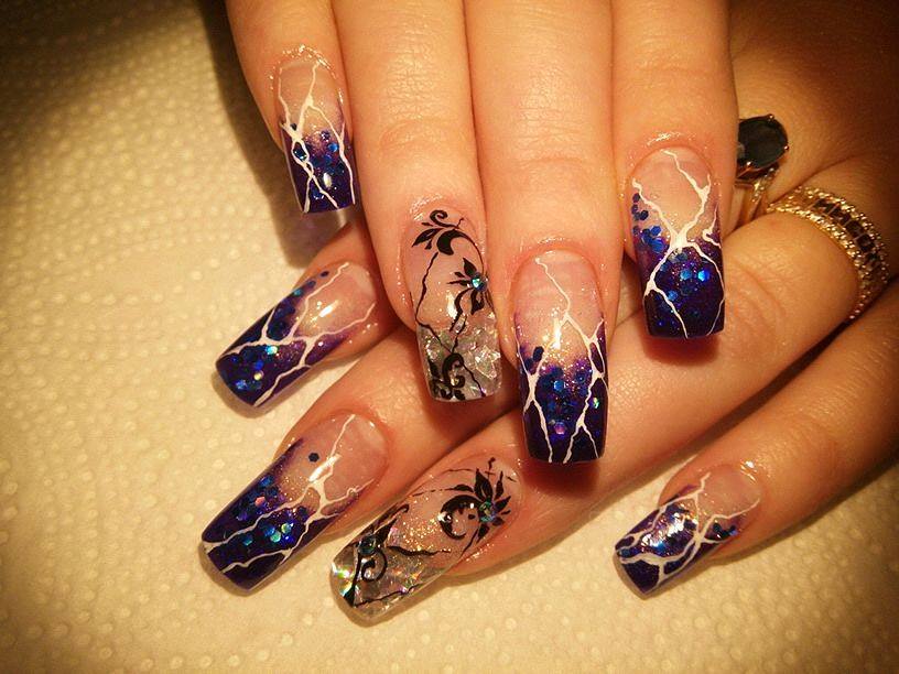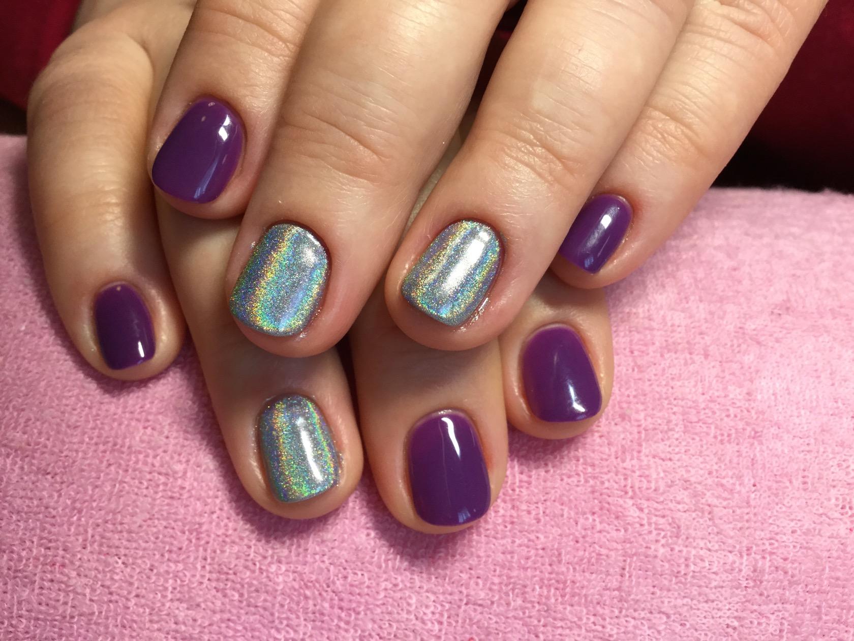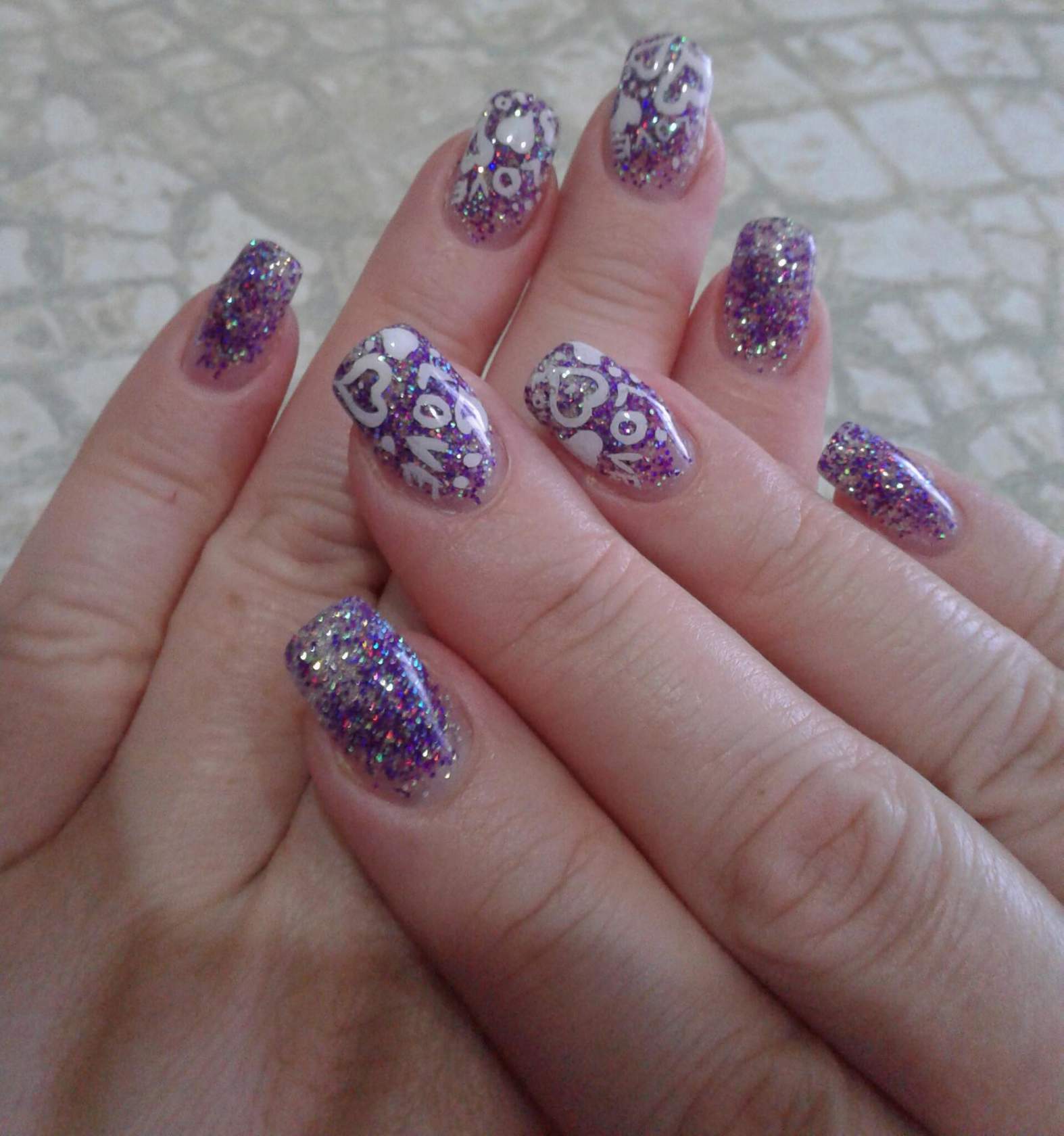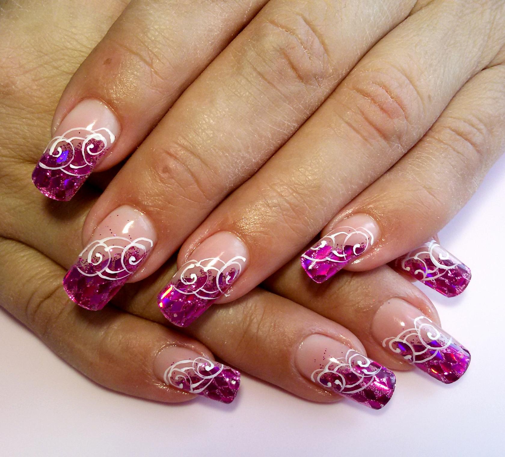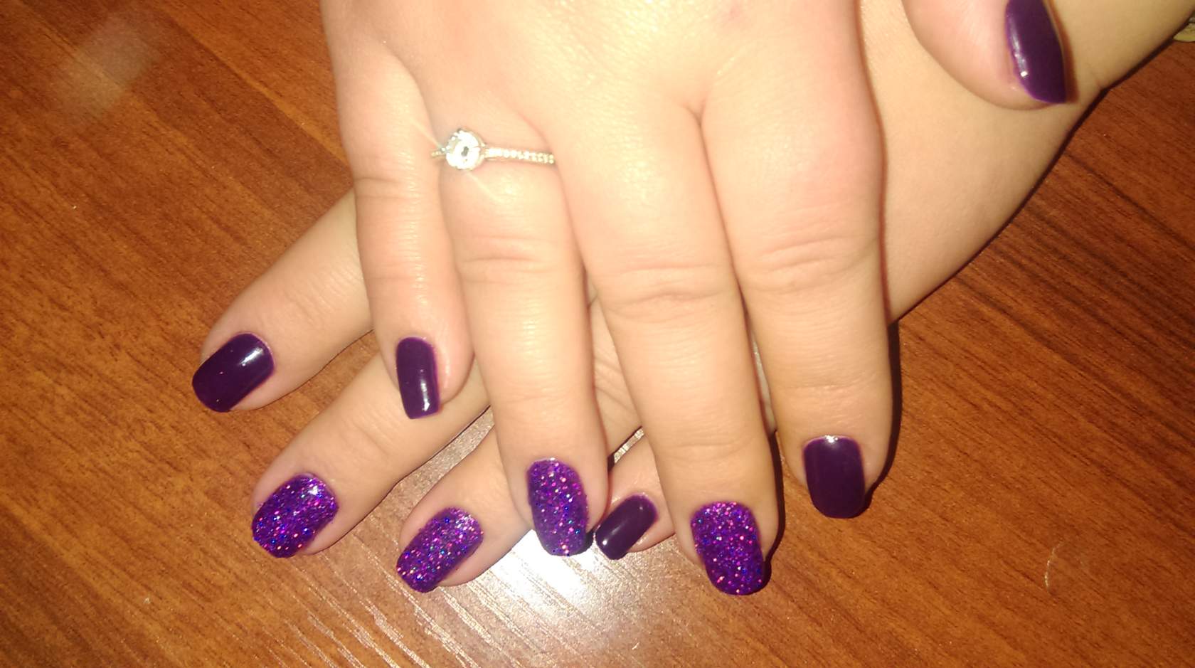 Une des techniques uniques dans la conception de la manucure s'est avérée être une option enchanteresse - la manucure pourpre avec des étincelles. Pour les occasions spéciales et spéciales, les ongles sont entièrement décorés de paillettes lilas brillantes. L'une des techniques à la mode consistait à disposer des éléments de décor transparents sur une base violette et à l'option lorsque les paillettes lilas sont disposées sur un vernis de couleur alternative. La manucure pourpre avec des étincelles scintillantes est très impressionnante et festive. Vos ongles deviendront sûrement un objet d’admiration si des motifs et des contours étincelants apparaissent dessus;