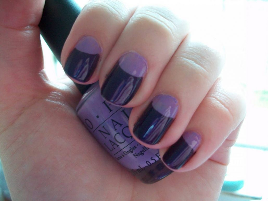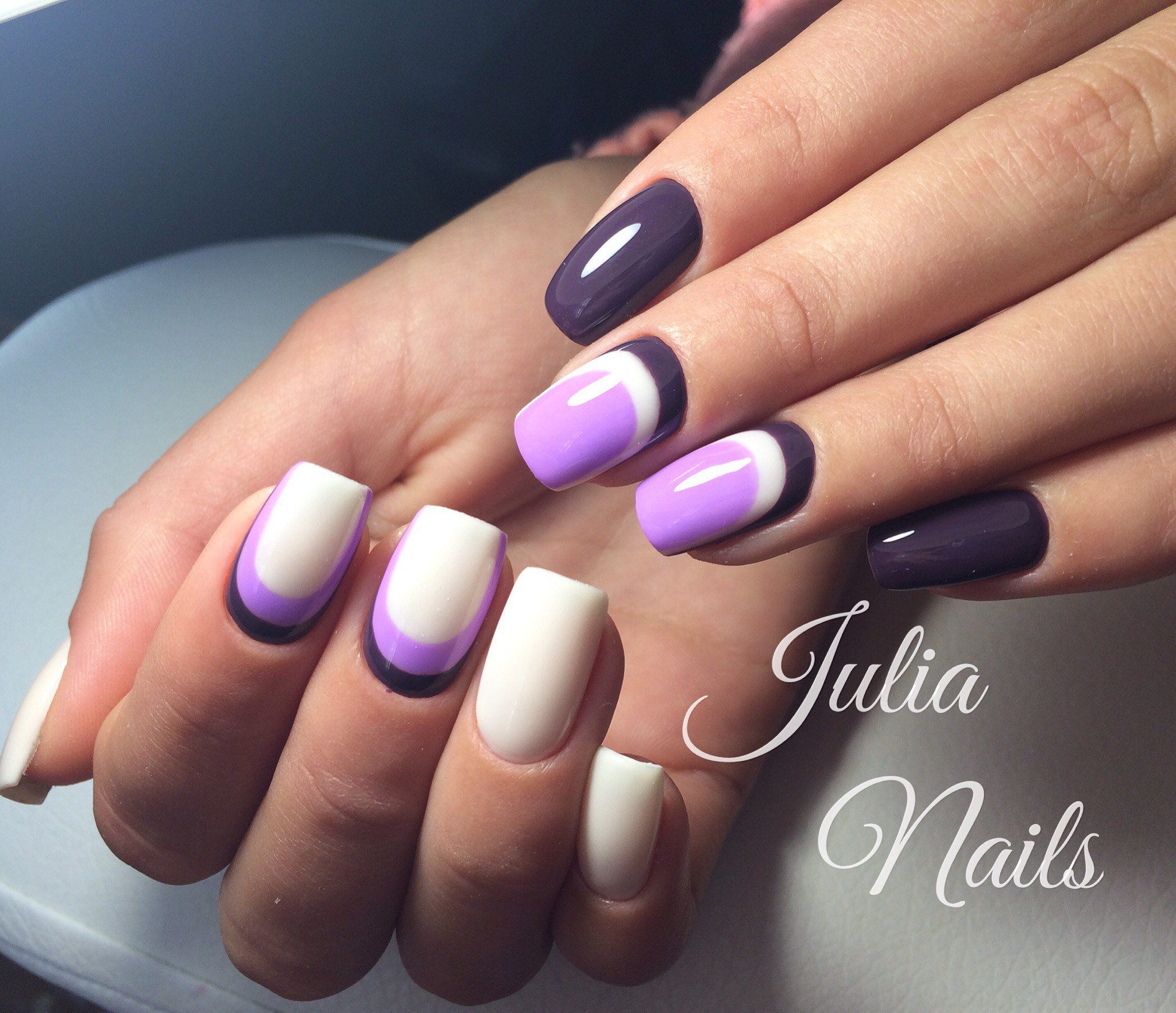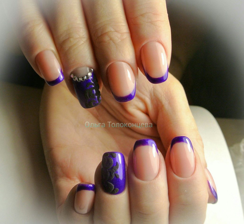 Un autre nom pour cette technique est manucure avec une frange. Rendez-le facile. Pour commencer, le clou est peint avec n'importe quelle nuance de violet, après quoi une frange est appliquée le long du périmètre avec n'importe quelle nuance contrastante. Ensemble avec violet, jaune, noir ou tout autre qui correspond à elle va paraître spectaculaire.