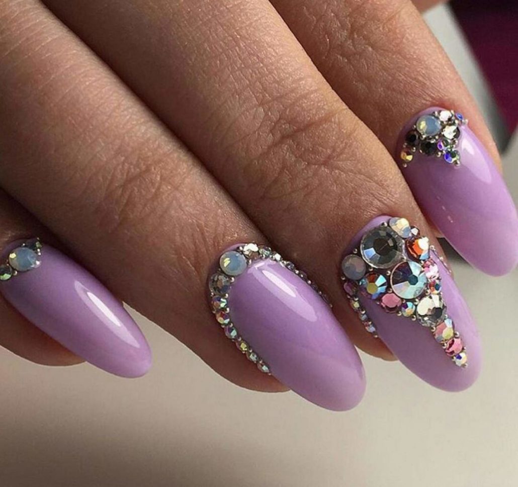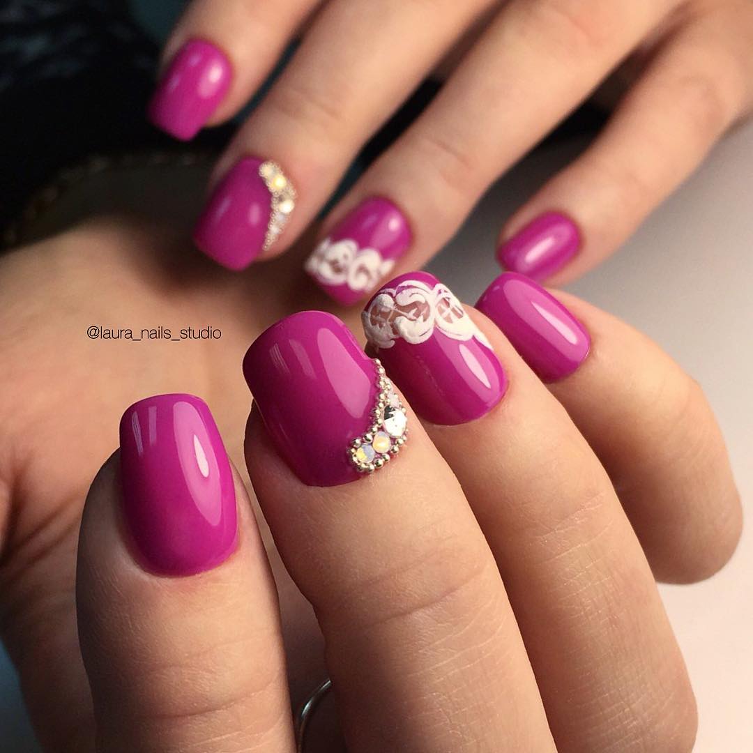 Décorer les ongles avec des strass de différentes tailles sera toujours pertinent. Dans le même temps, les stylistes recommandent de travailler avec eux avec soin, car si vous en faites trop avec leur numéro, vous obtiendrez un résultat qui aura l'air ridicule. Une petite quantité de strass suffit à décorer 1 à 3 soucis pour un look romantique et élégant.