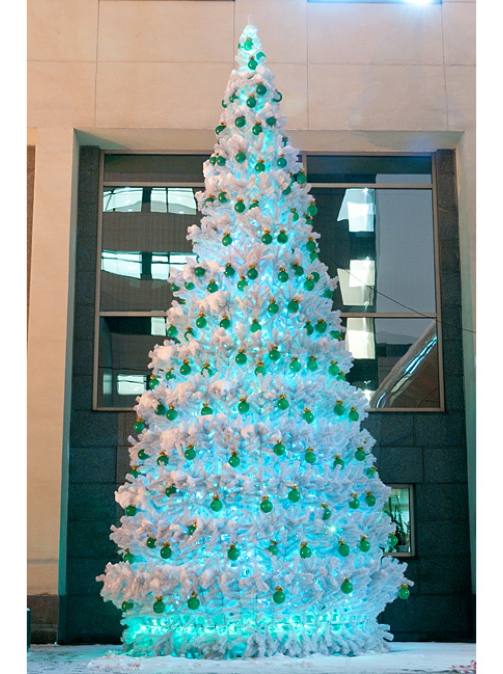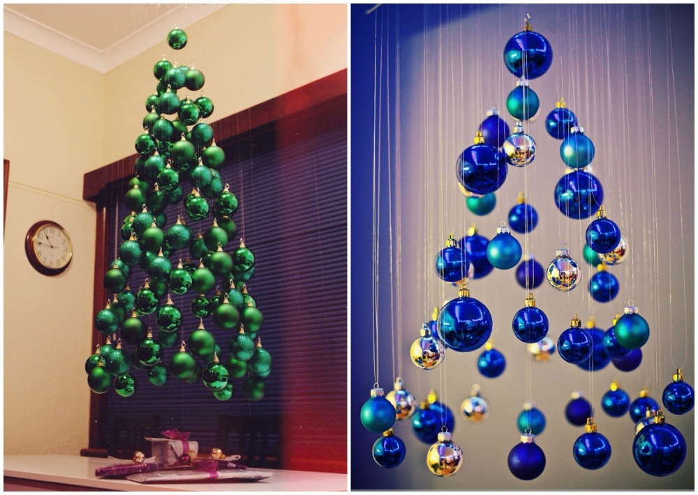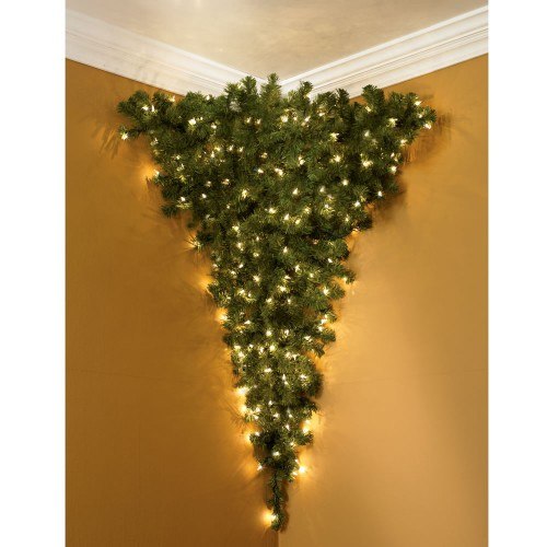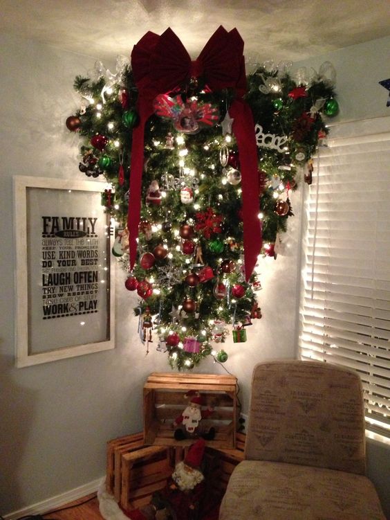 Pour économiser de l'espace de travail, il pratique depuis quelques années l'installation d'un arbre du Nouvel An, à l'envers. Il est très intéressant de regarder la beauté de la forêt inhabituelle suspendue à l'envers. Imaginez à quel point les visiteurs seront ravis lorsqu'ils entreront dans le bureau et, au-dessus d'eux, comme un salut festif, guirlandes et serpentins pendent, ruisseaux de confettis. Cependant, le "loup-garou" n'est pas bon marché. Tous les coûts d'installation coûteront au moins 100 $.