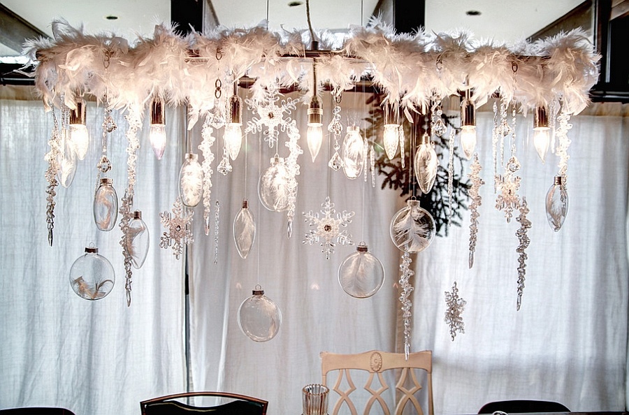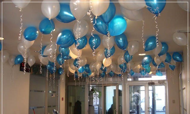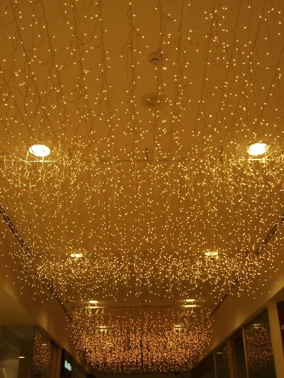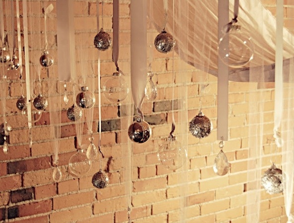 Une solution ergonomique sera la conception du plafond avec des guirlandes et des boules fixées sur des cordes. La longueur du fil varie à volonté. Cela semble assez impressionnant, mais en même temps sobre. Approprié à la décoration du bureau, à la fois dans un petit espace et zonant un grand.