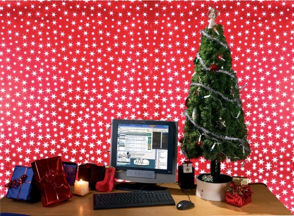 Le lieu de travail de chaque employé du bureau peut être décoré dans le style du minimalisme du Nouvel An. Sur un ordinateur portable de bureau, vous pouvez installer des papiers peints de bureau à thème et un économiseur d'écran du Nouvel An, et habiller le boîtier de flocons de neige blancs autocollants. Habituellement, le lieu de travail est aménagé au goût et à la discrétion de l'employé.