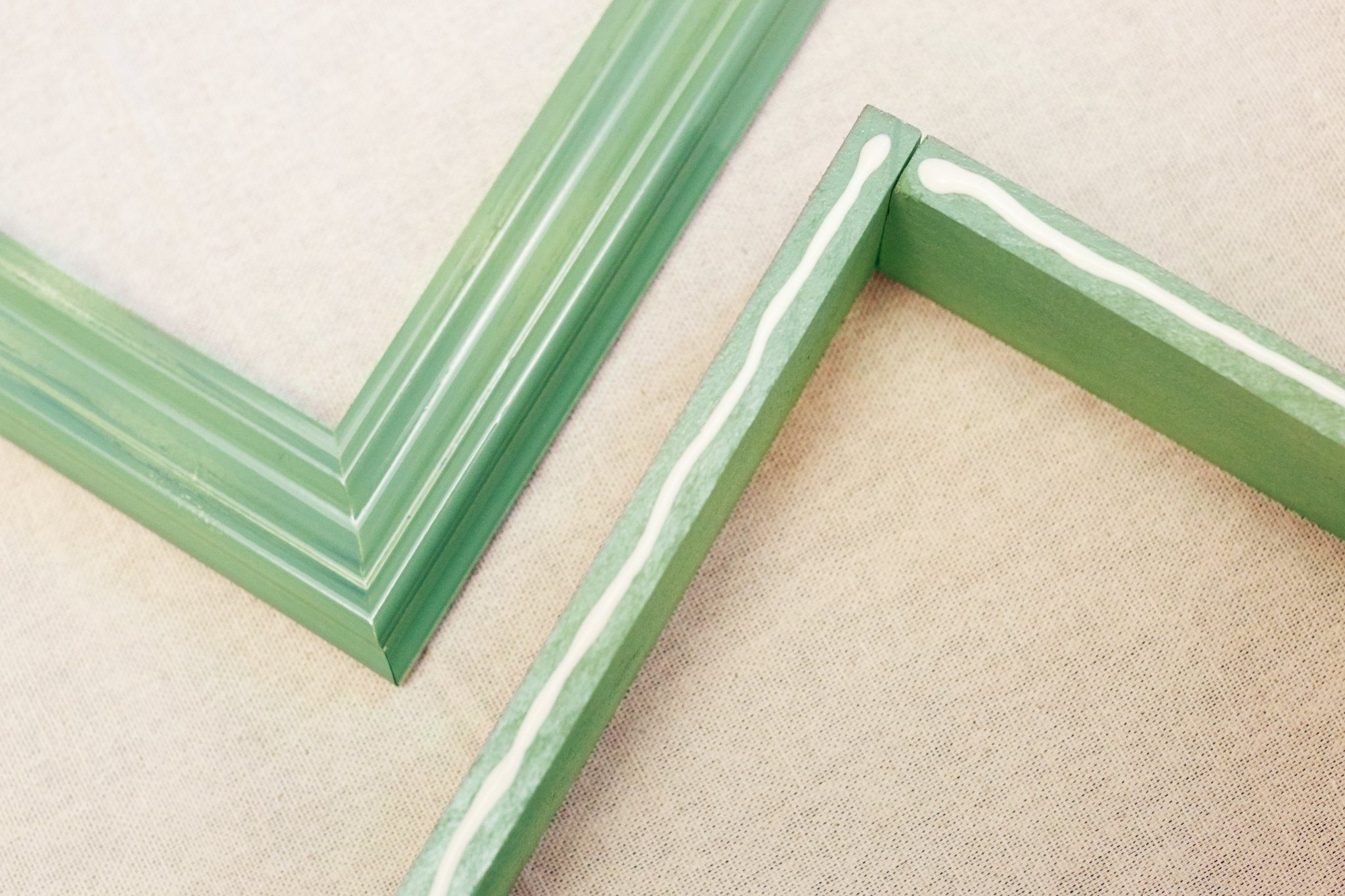 Nous peignons les côtés du cadre en bois et le laissons sécher.