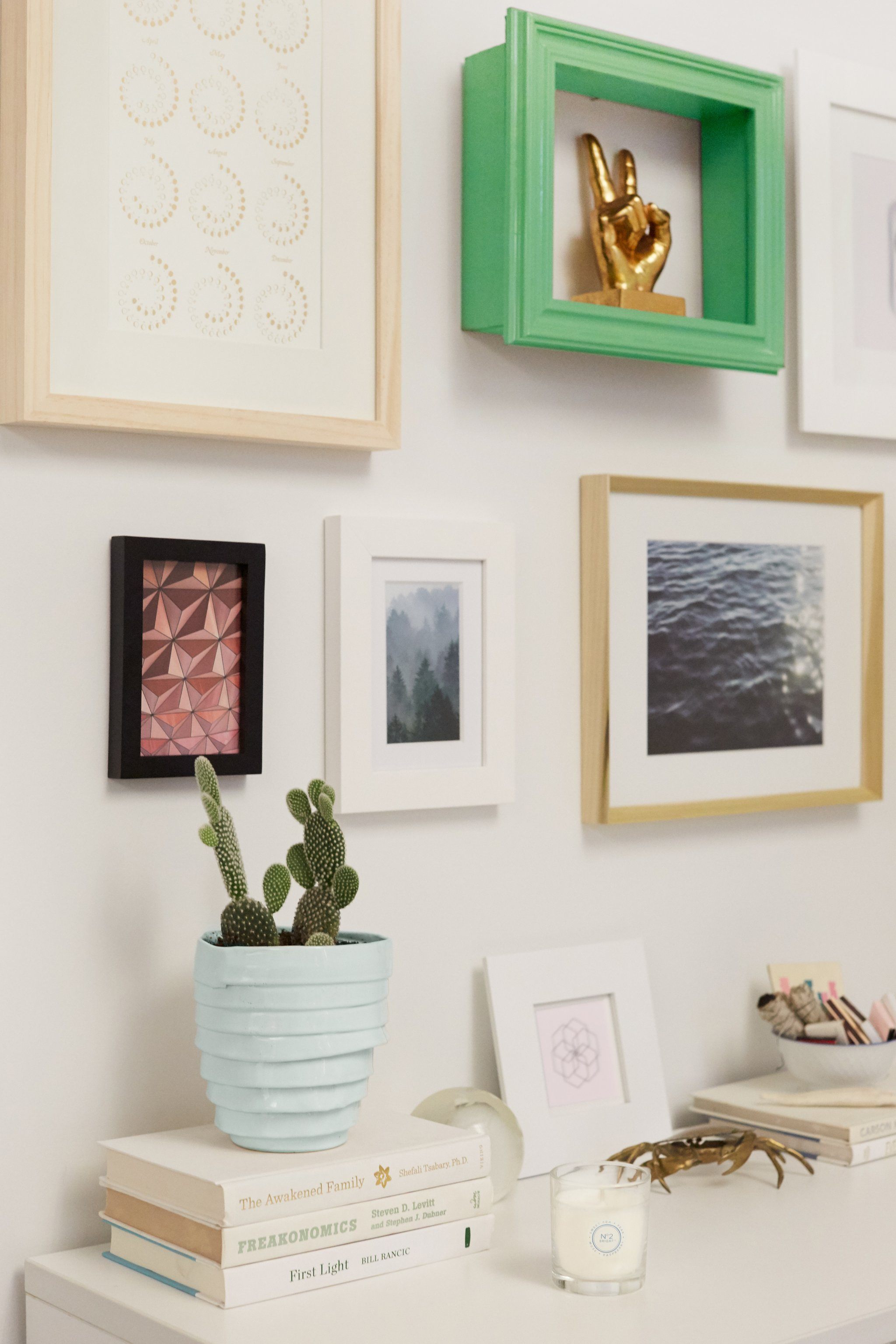 Installez le cadre sur le mur. Vous pouvez y mettre diverses figurines, des photos imprimées et bien plus encore.