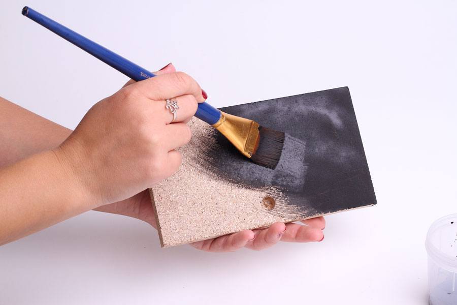 Nous peignons des planches en bois avec de la peinture noire. Si vous le souhaitez, vous pouvez utiliser une nuance différente.