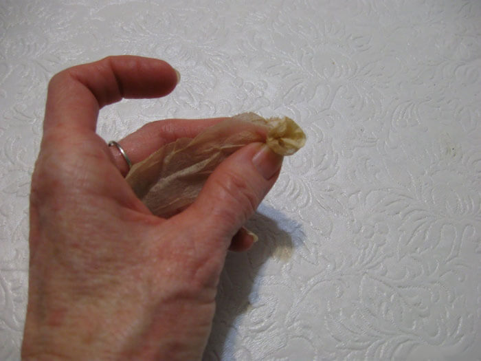 Enveloppez chaque fleur avec des feuilles de thé peintes à la gaze. Nous préparons le nombre de bourgeons nécessaire.