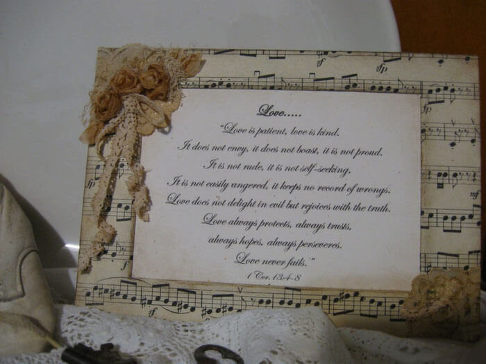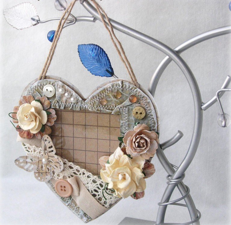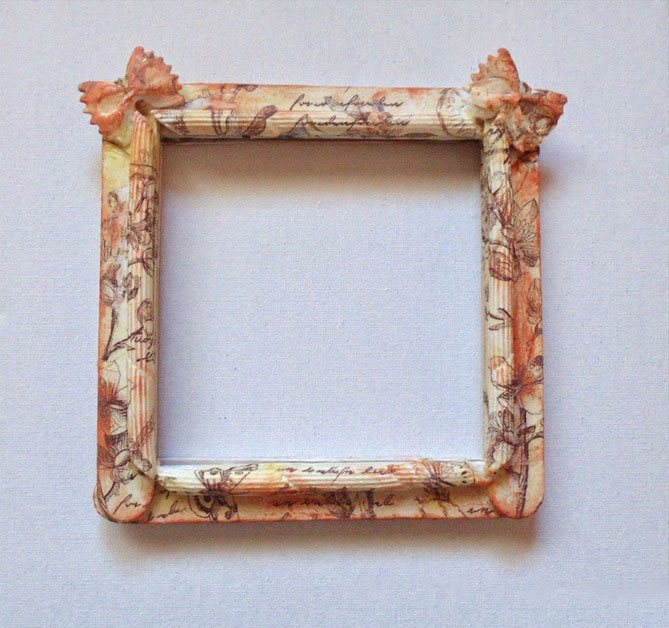 Collez les flans sur le cadre avec une simple colle PVA. Si vous le souhaitez, vous pouvez utiliser un autre décor supplémentaire dans un style vintage.