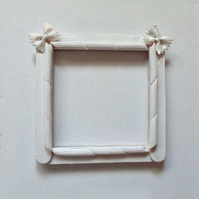 Une fois les billettes complètement sèches, nous procédons au décor. Collez des pâtes frisées avec une simple colle PVA.