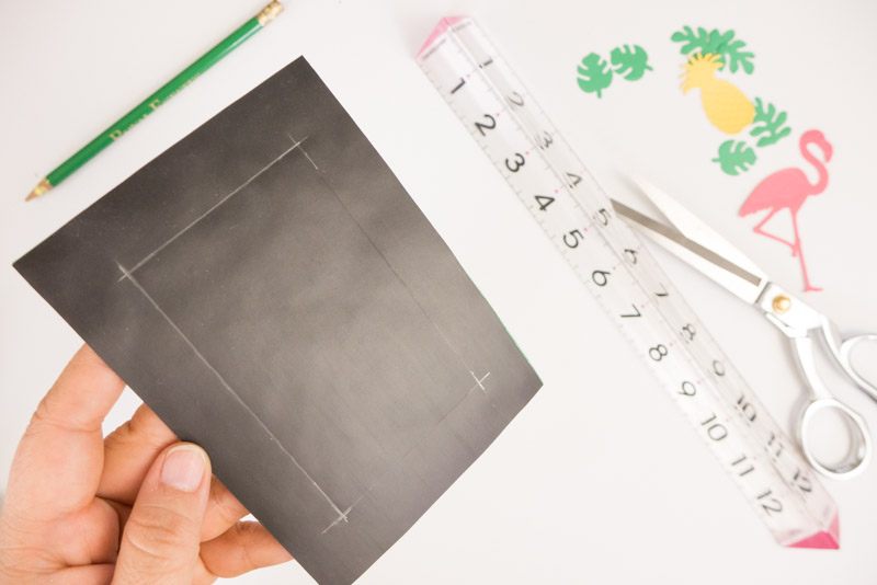 Dans une feuille de carton de couleur, nous découpons un flan pour obtenir un cadre de taille appropriée. À la suite de la feuille magnétique, nous découpons la même pièce.