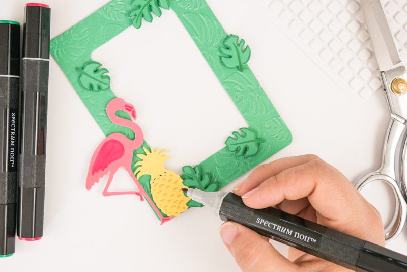 Collez progressivement le décor préparé à l'avance sur la face avant du cadre.