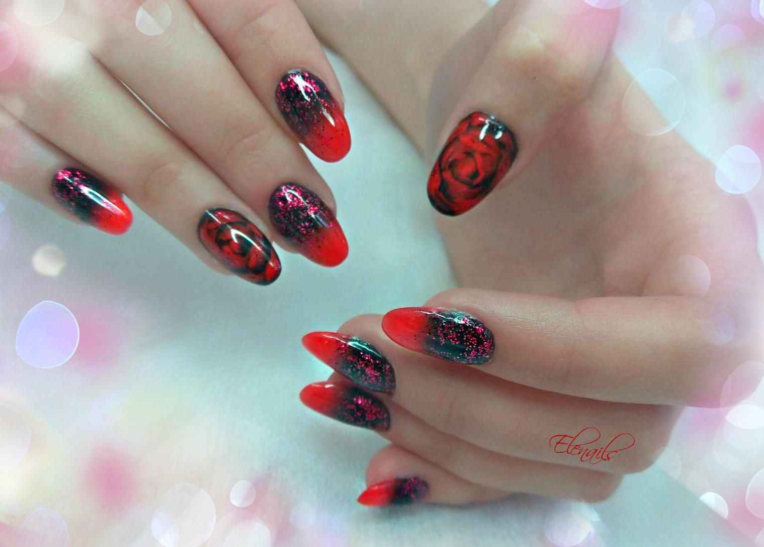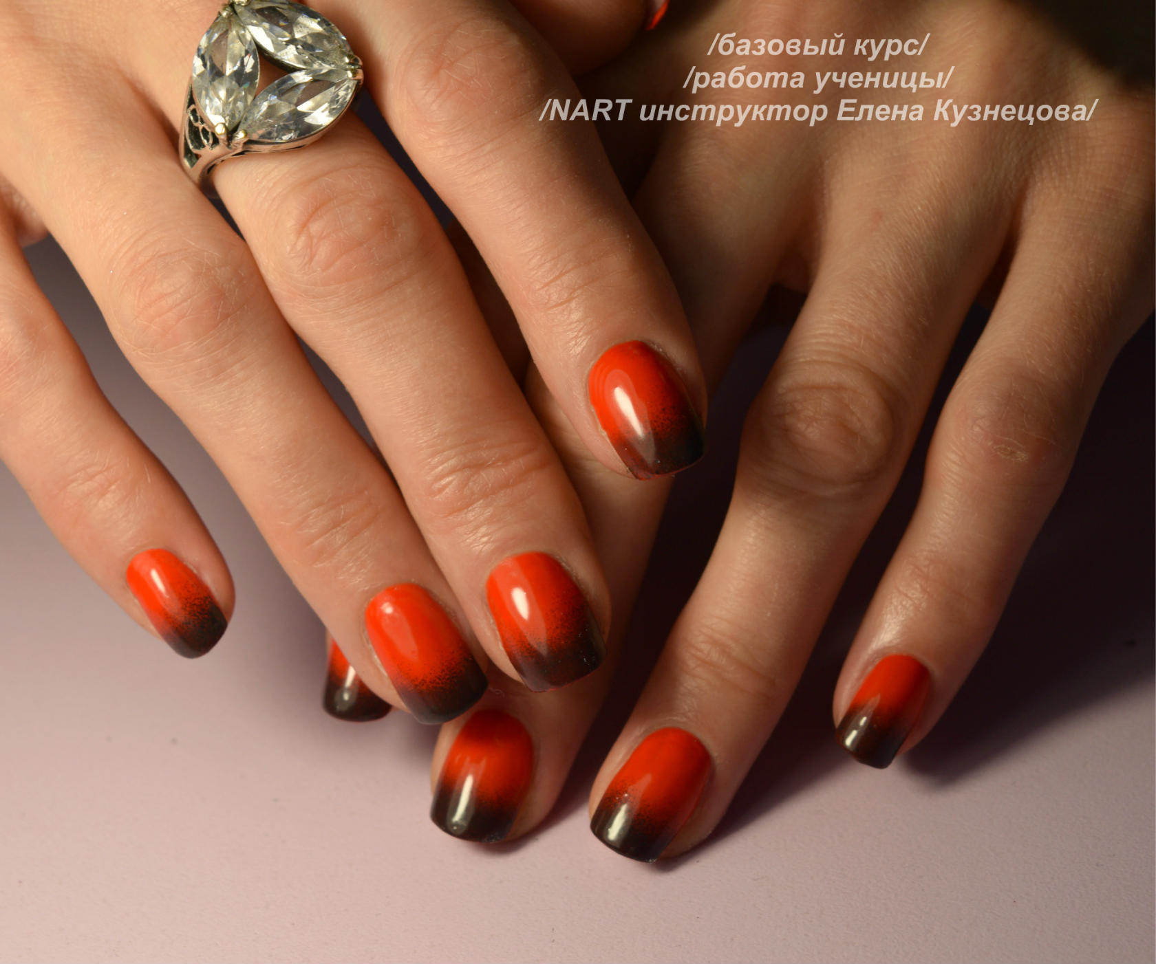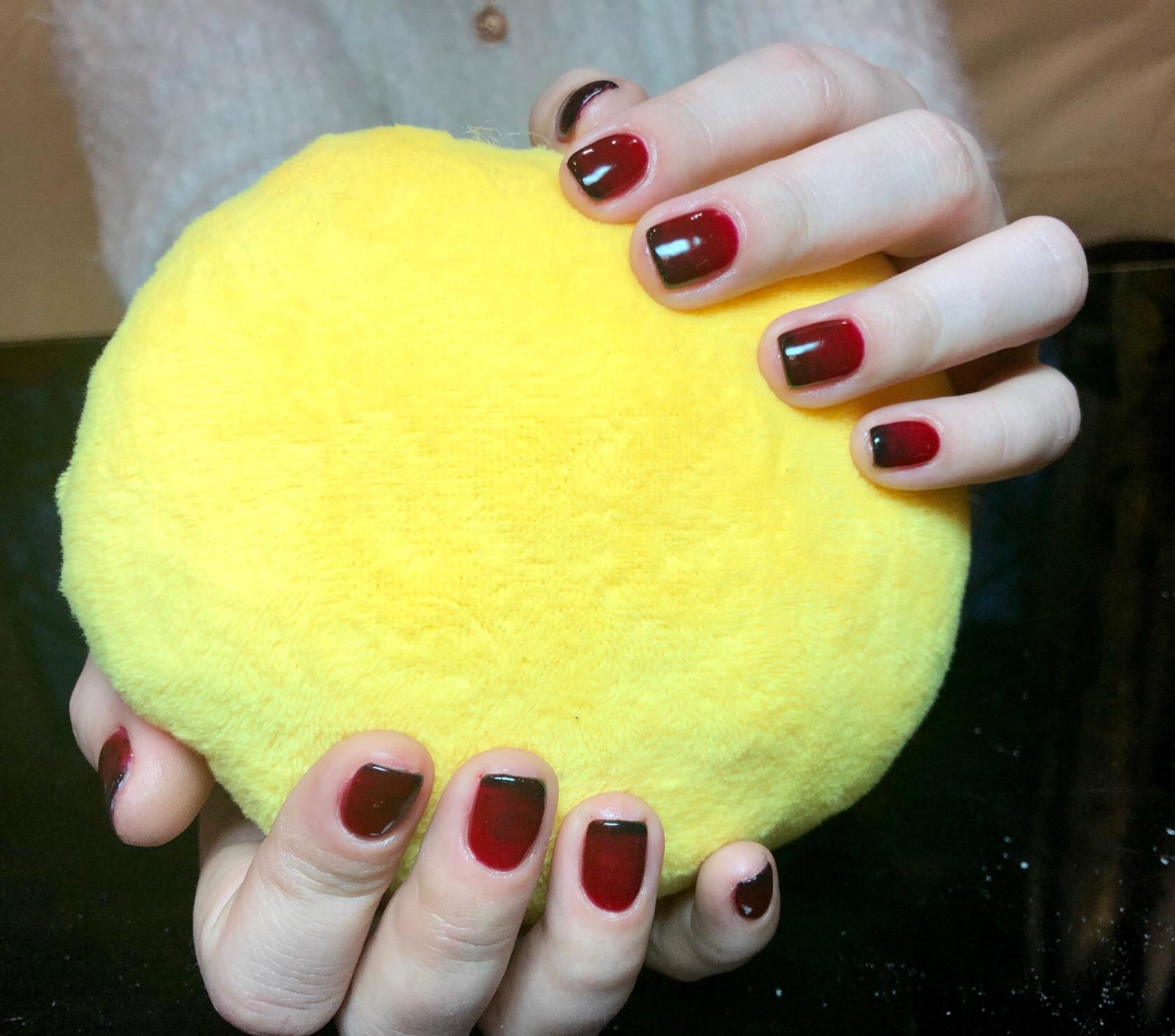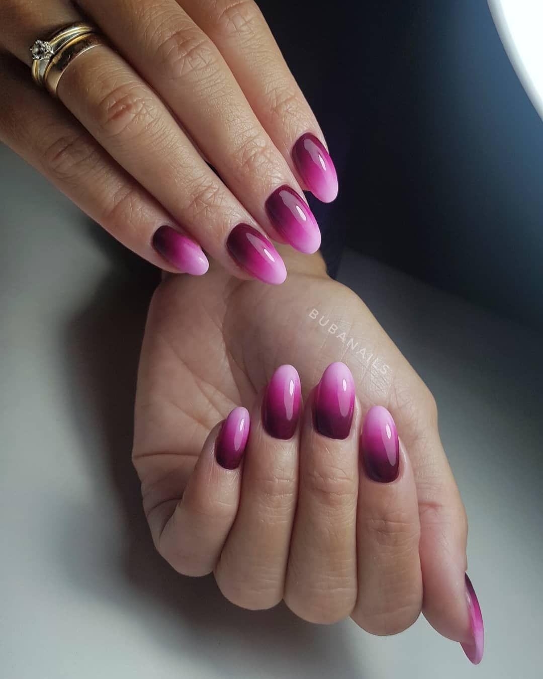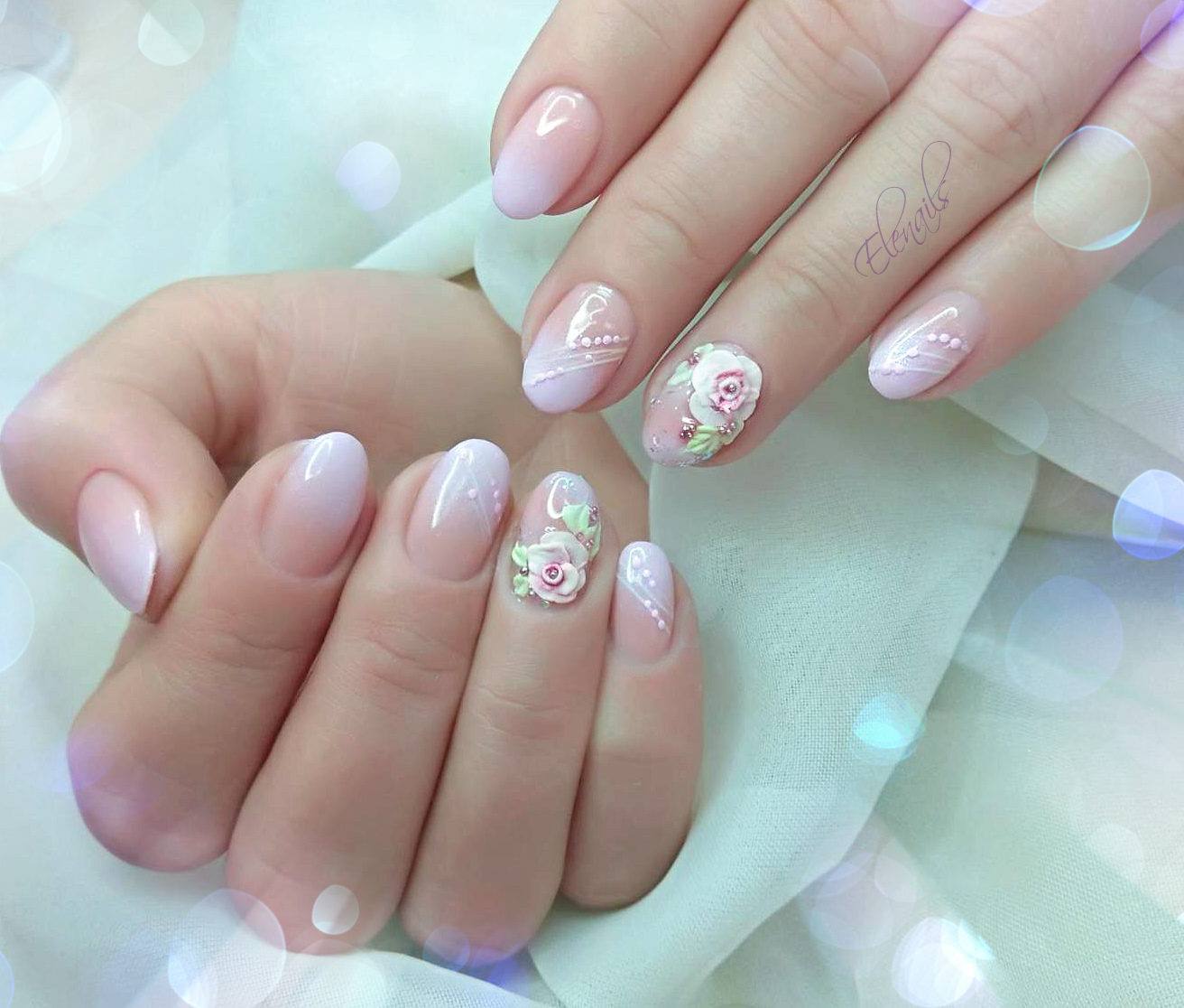 Pour ne pas gâcher votre incroyable manucure, il est utile de travailler avant de traiter la zone autour de l'ongle avec une légère couche de ruban adhésif (colle spéciale). Une fois que la colle est complètement sèche, vous pouvez commencer à travailler. Eh bien, bien sûr, à la fin de la manucure avec un léger mouvement, le ruban doit être retiré. Si ce dispositif n'est pas à portée de main, le vernis dépassant les limites de la manucure doit être retiré immédiatement après l'application. Il existe également une astuce principale pour effectuer une veste ombre. N'appuyez pas trop fort sur l'éponge sur la plaque à clous. Cela ruinerait les transitions douces des nuances de couleurs.Après chaque séchage de l'ongle, la couche de vernis est mise à jour.