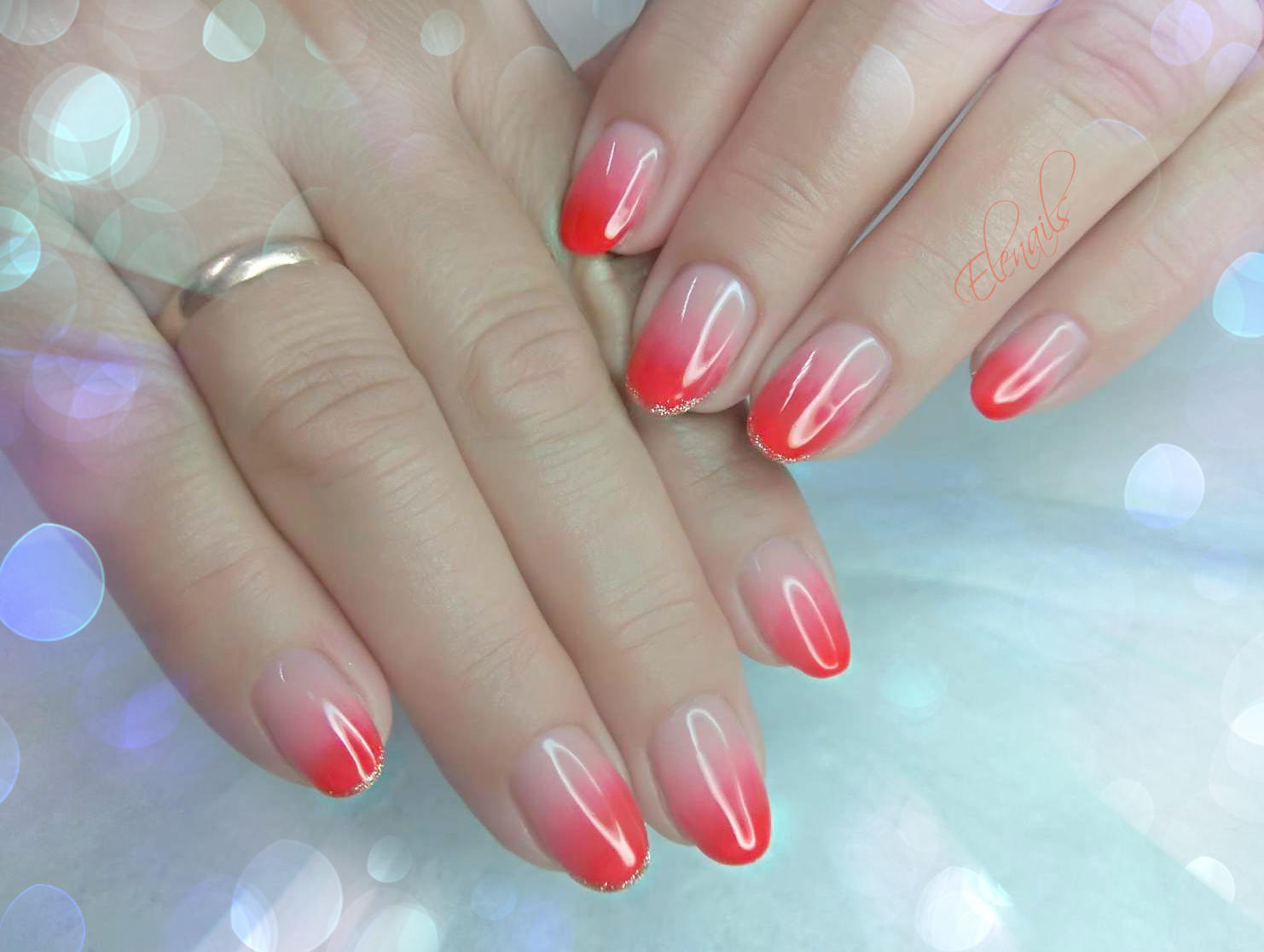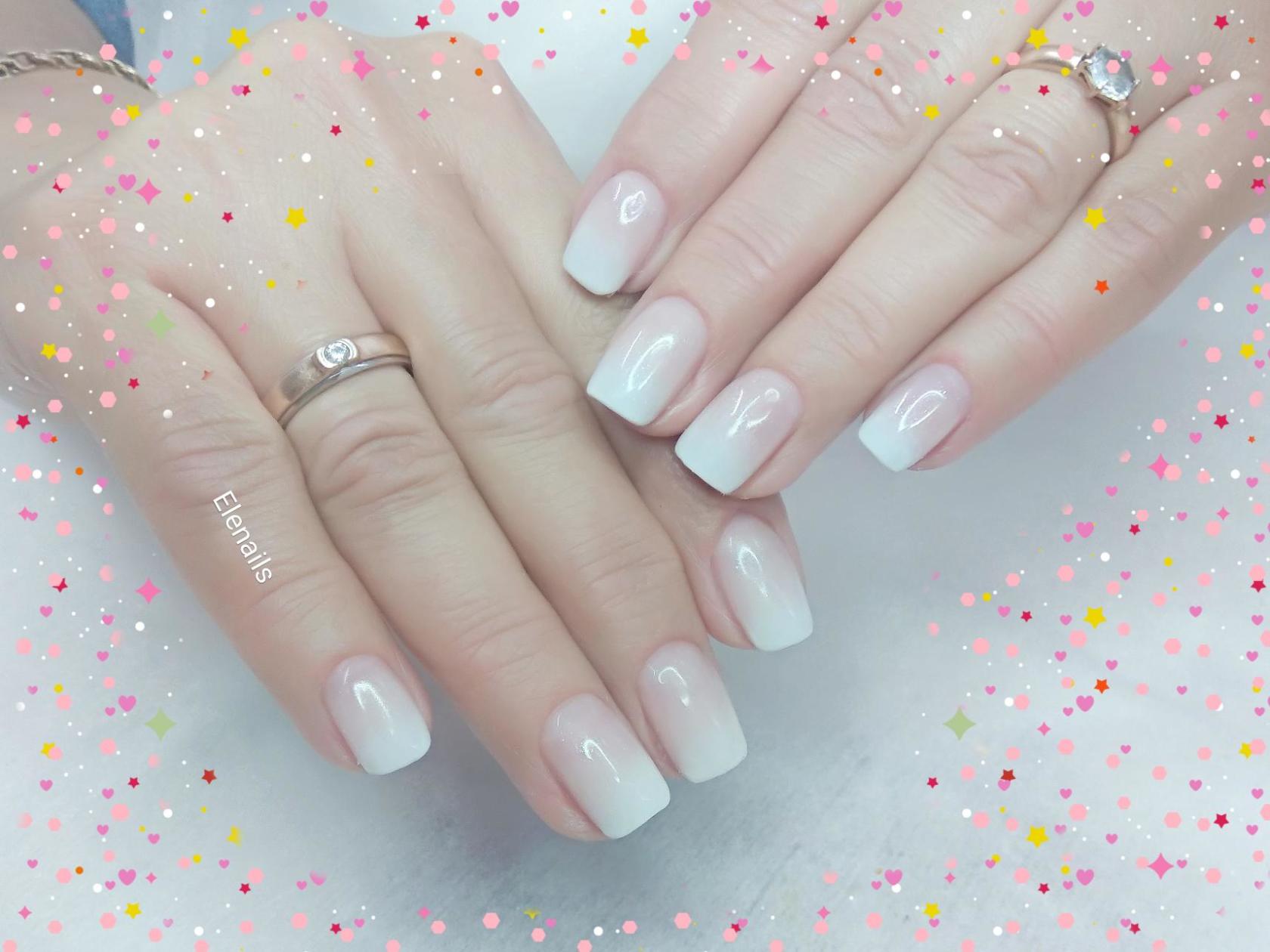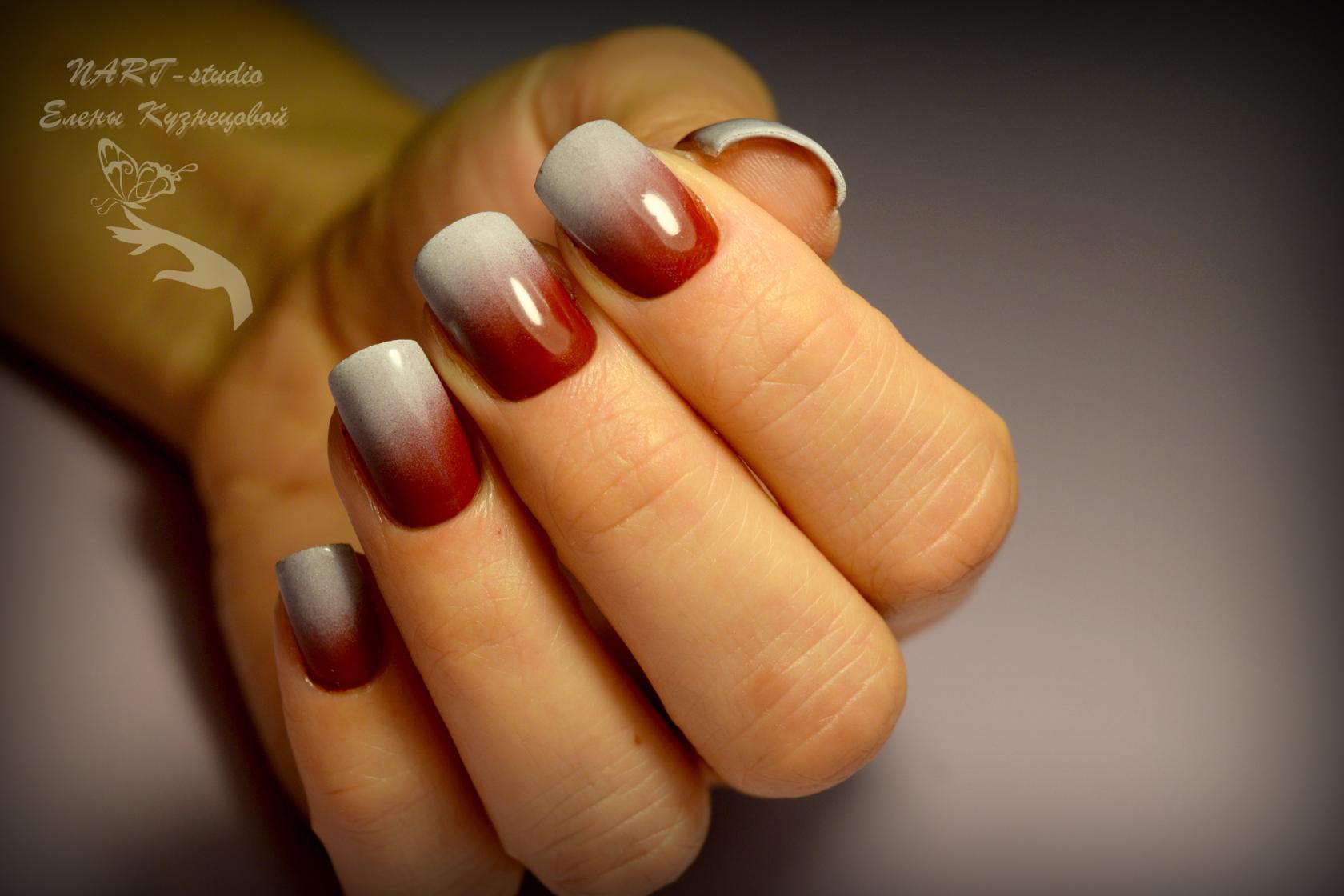 Certains maîtres de manucure modernes, effectuant une ombre française, utilisent un aérographe. Ce dispositif offre une opportunité incroyable d'appliquer plusieurs nuances sur l'ongle de manière lisse et uniforme à la fois. Et surtout, il contrôle la densité des peintures lors de la pulvérisation. Tout dépend du contact étroit du clou et de l'appareil. Plus l'appareil est éloigné, plus la saturation de la teinte est faible. Cela permet d'avoir un contrôle total sur les transitions du jeu de couleurs. Mais avant de commencer à travailler avec un aérographe, vous devez vous familiariser avec ses fonctions. Bien sûr, la première fois, vous ne pouvez pas obtenir l’effet souhaité. Mais ne désespérez pas, vous devez réessayer. Après tout, si vous n'essayez pas, vous ne pourrez pas comprendre toutes les puces des technologies nouvelles pour la manucure moderne.