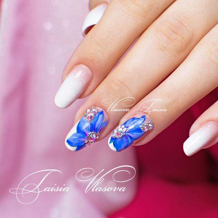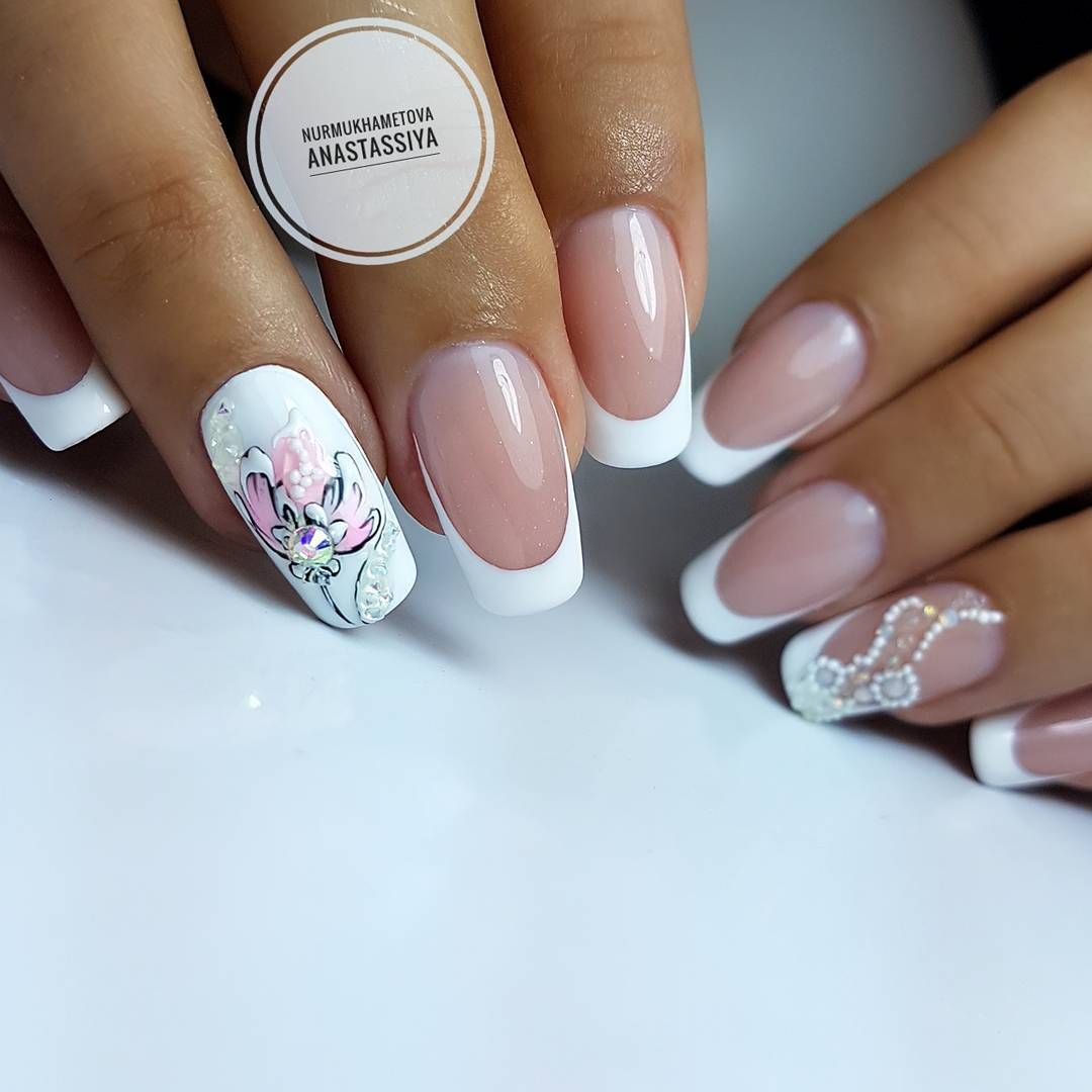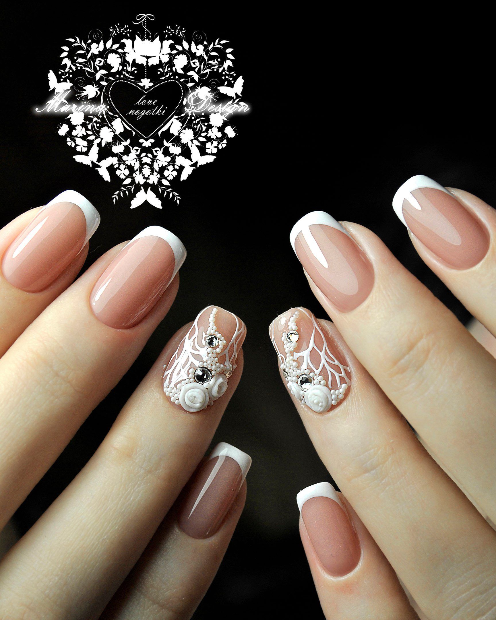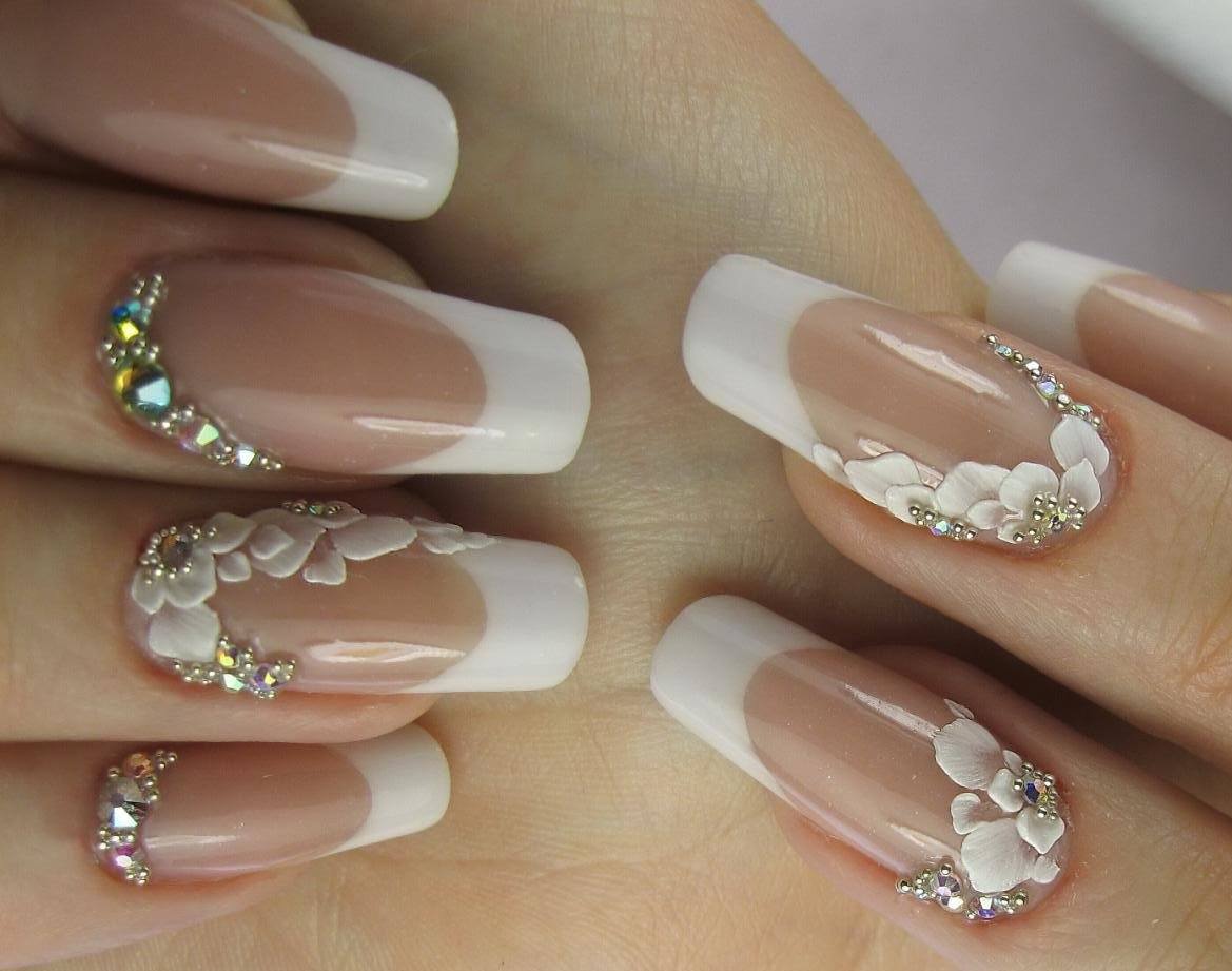 Pour chaque fille, l'événement le plus important est un mariage. C’est la raison pour laquelle chaque épouse essaie de rendre son image luxueuse et irrésistible, car cette journée reste dans sa mémoire. Un rôle important pour un tel événement est donné à la manucure. La plupart des maîtres offrent aux filles une veste belle et délicate pour créer un nail art de mariage. Une conception aussi modeste se transforme en une manucure de fête avec un décor en forme de fleurs. De délicats pétales de boutons ornent les ongles, ajoutent de la tendresse et de la romance à l'image globale. Le plus souvent, une manucure à la française avec des fleurs se fait en finition pastel ou blanche. Pour la décoration, vous pouvez appliquer du modelage, des bouillons, des strass et tout autre élément.