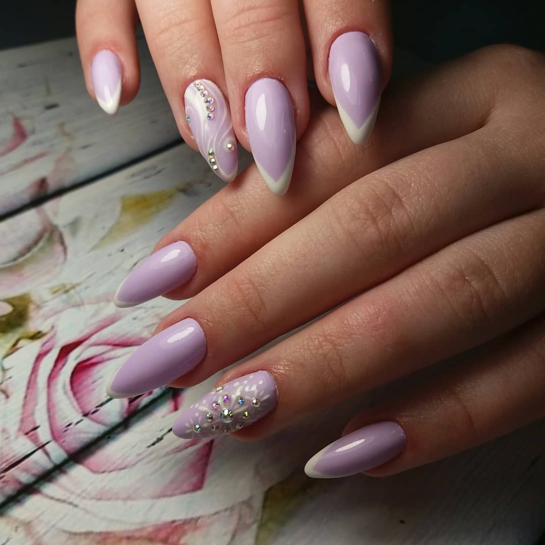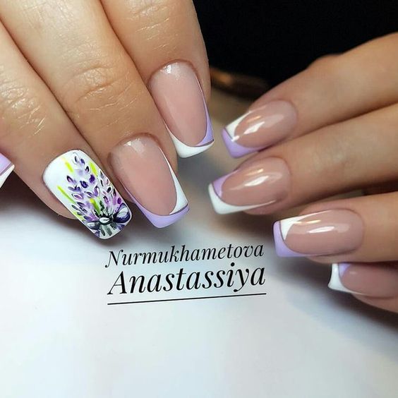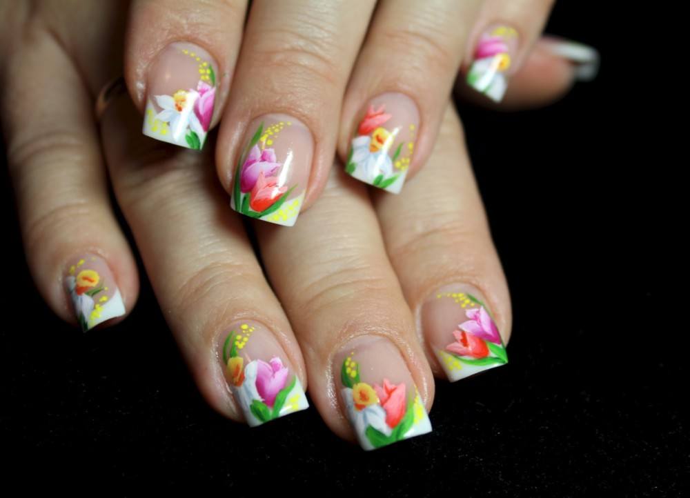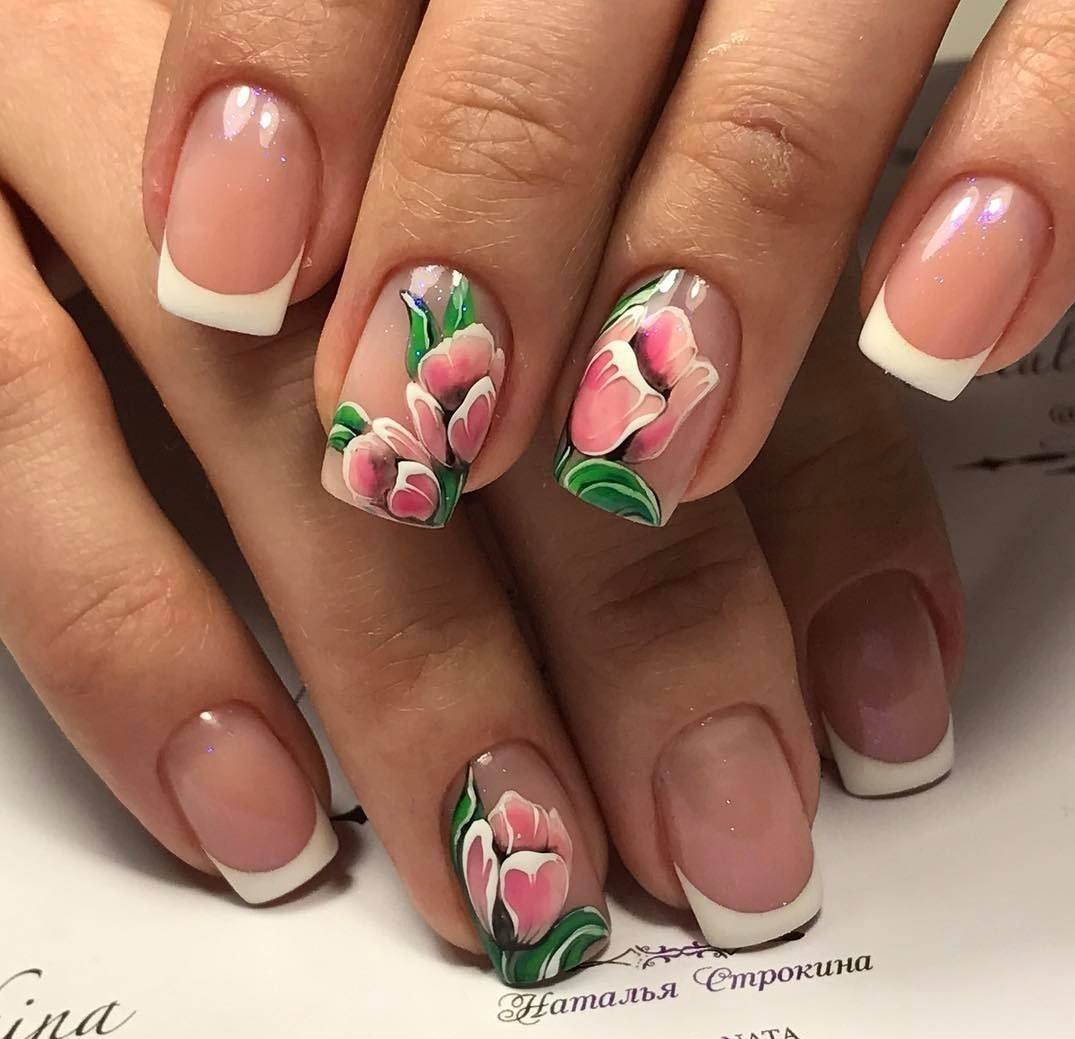 Les tulipes servent souvent de décoration française au printemps. Ce décor va parfaitement égayer, donner une touche de fraîcheur et de tendresse aux mains de la jeune fille. Des pétales de lilas ou de tulipe rose pâle peuvent décorer les ongles de toute longueur et forme. Vous pouvez faire des tulipes comme un bouquet ou une fleur séparée. Décorez plusieurs clous avec un tel motif. Vous pouvez également ajouter quelques décors légers et discrets.