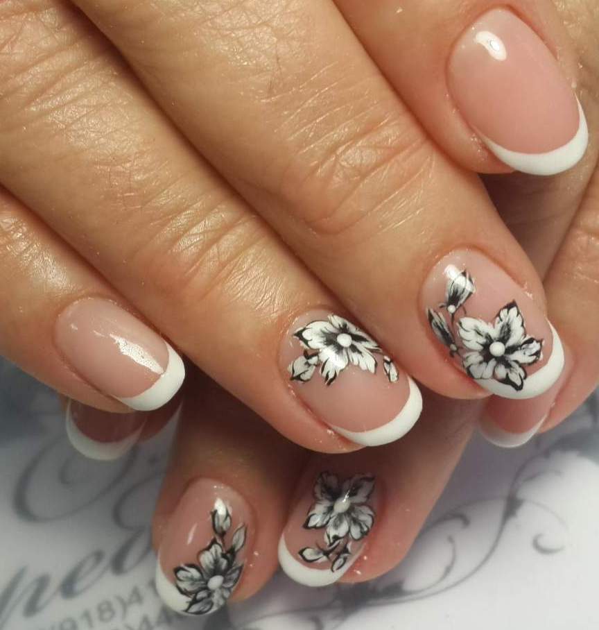 Les stylos propres et attrayants de la jeune fille sont considérés comme l’attribut le plus important et le plus important d’une image belle et élégante. De nombreux psychologues affirment que lors de la communication avec une personne, nous portons tout d'abord une attention involontaire à ses stylos. Cela est dû au fait que dans la plupart des conversations nous gesticulons. Par conséquent, chaque fille est simplement obligée de prendre soin de ses mains avec soin et précision. La conception la plus commune est considérée comme une manucure française. Mais sans décor supplémentaire, un tel design a l'air ennuyeux et modeste. C'est pourquoi les maîtres de l'art des ongles utilisent des impressions florales lors de manucures. Ce décor est capable de donner aux mains de la fille de la tendresse et de la grâce. Une manucure française avec des fleurs peut compléter et transformer de nombreuses tenues. Et maintenant, nous allons partager avec les fashionistas les idées les plus luxueuses et sophistiquées pour réaliser un français avec des fleurs.