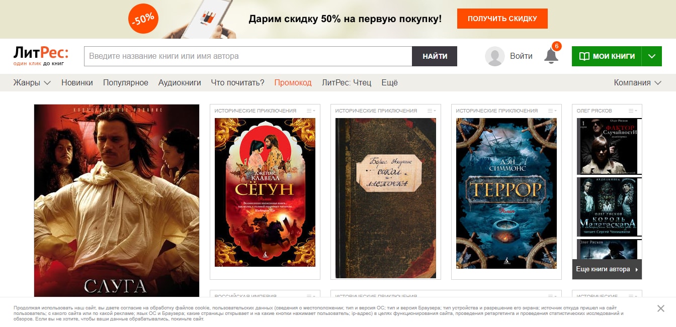 Une autre bibliothèque en ligne assez volumineuse est bien sûr le fichier litres.ru. Mais contrairement à la version précédente, la plupart des livres sont payés sur cette ressource. En outre, la base de données contient également des livres audio, qui gagnent de plus en plus en popularité.